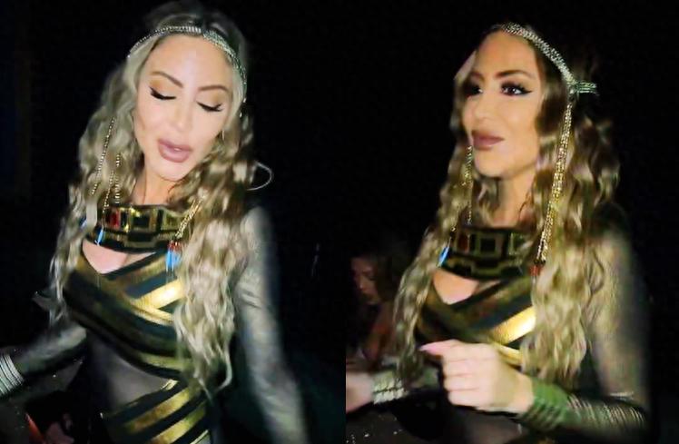 只見她性感裝束,絲毫不吝惜秀出極致曲線,都快奔五的年紀,還像個小女孩一樣玩得不亦樂乎,面對一些恐怖道具,還是會被嚇得尖叫,花容失色。