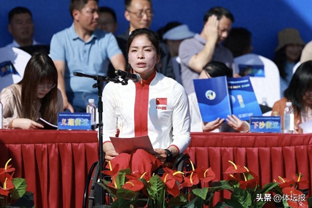本次區運會特別邀請了杭州亞殘運會首金獲得者謝毛三女士致辭。謝毛三講述了她九年刻苦訓練皮划艇,勇奪冠軍,爲國爭光的勵志故事。謝毛三的兒子包忠瑞在錢塘區義蓬二小就讀,包忠瑞代表錢塘學子給自己爲國爭光的媽媽獻上了鮮花。區委常委、宣傳部部長李鵬爲謝毛三女士頒發錢塘區“最美媽媽”榮譽獎牌。