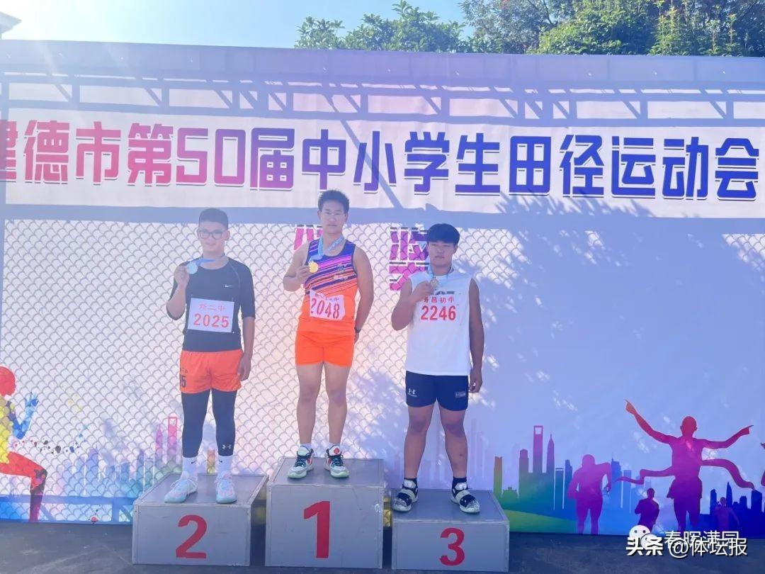 在建德市第50屆中小學生田徑運動會上,新安江三中田徑代表隊斬獲285分,再次榮獲建德市初中A組團體總分第一名,6人次刷新建德市初中男子四個項目最高紀錄,創造了歷史。