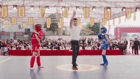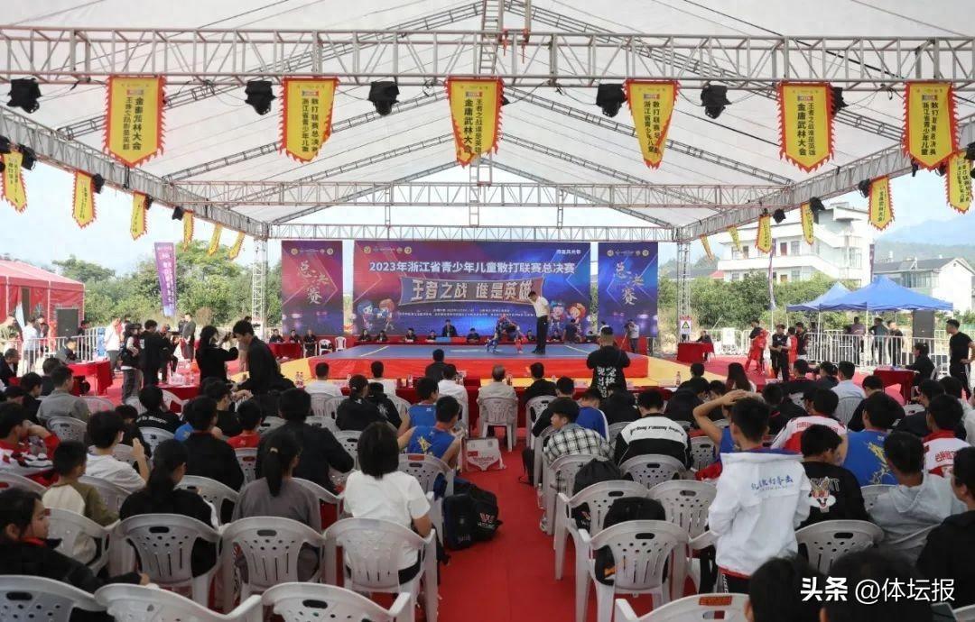 11月4日,2023浙江省青少年兒童散打聯賽總決賽暨金庸武林大會在石樑鎮麻蓬村文化禮堂廣場正式開幕,來自全省的12支隊伍210名散打運動員集聚於此,展開巔峯對決。