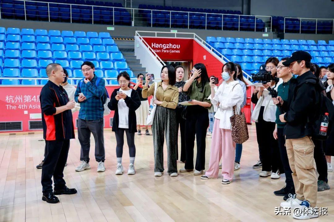 △杭州體育館副館長賴建國從彩票公益金的使用情況、場館惠民開放等方面向記者團做介紹。