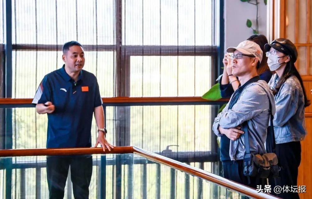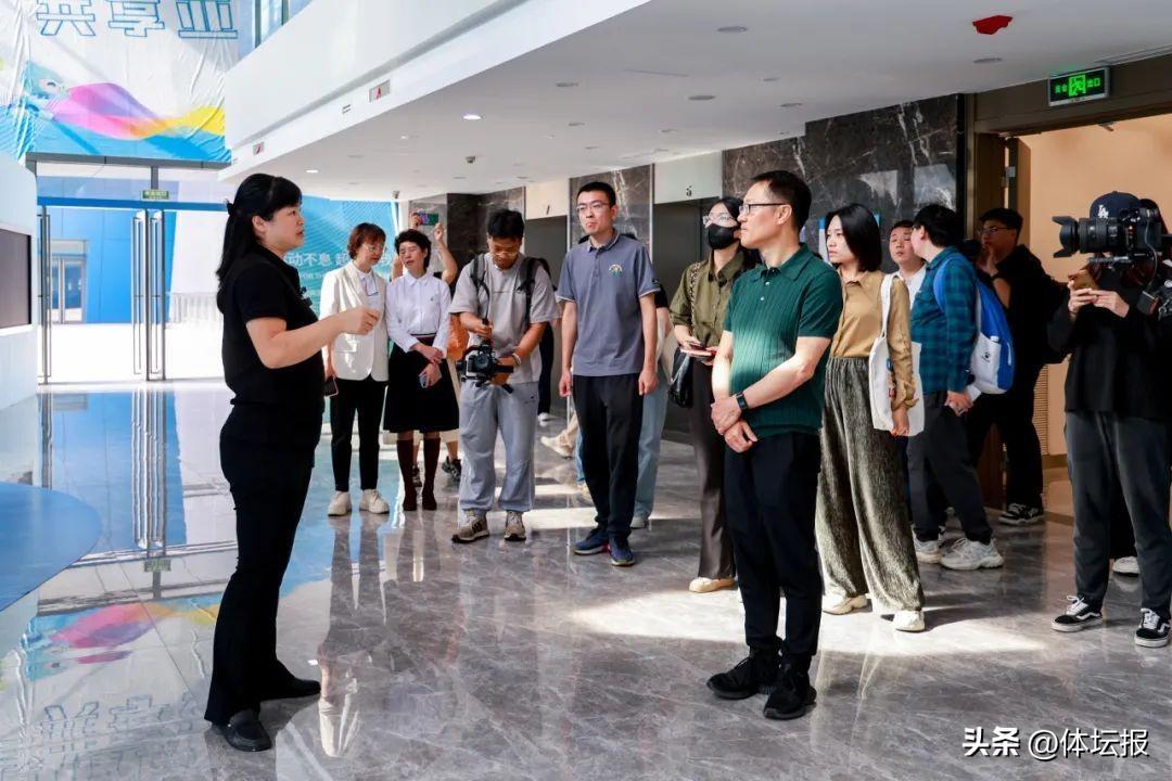 △臨平區文化和廣電旅遊體育局黨委委員、副局長李育剛陪同記者團走訪參觀豐彩運動公園。