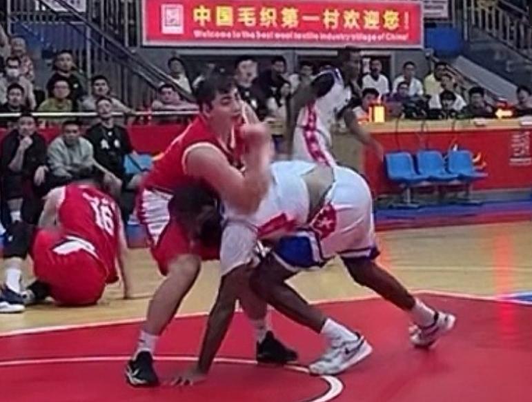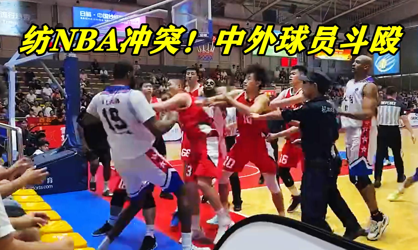 而在比賽中,一次籃下卡位,白隊19號大噸位級壯漢做出暴力動作,兇猛揮肘準備擊中中國選手,而紅隊11號球員早有準備,一個機敏躲避閃開暴擊,隨後起身予以還擊,雙方便一發不可收拾,打成一片,鬧劇收場。
