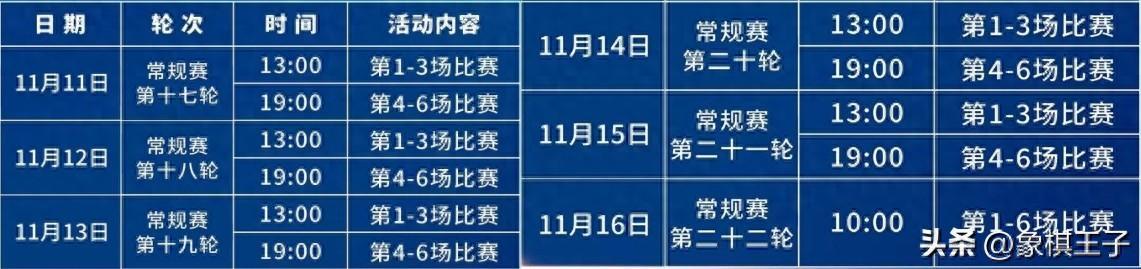 象甲第三階段11月11日至16日,浙江紹興柯橋,演繹第17-22輪的常規賽收官六場大對決。
