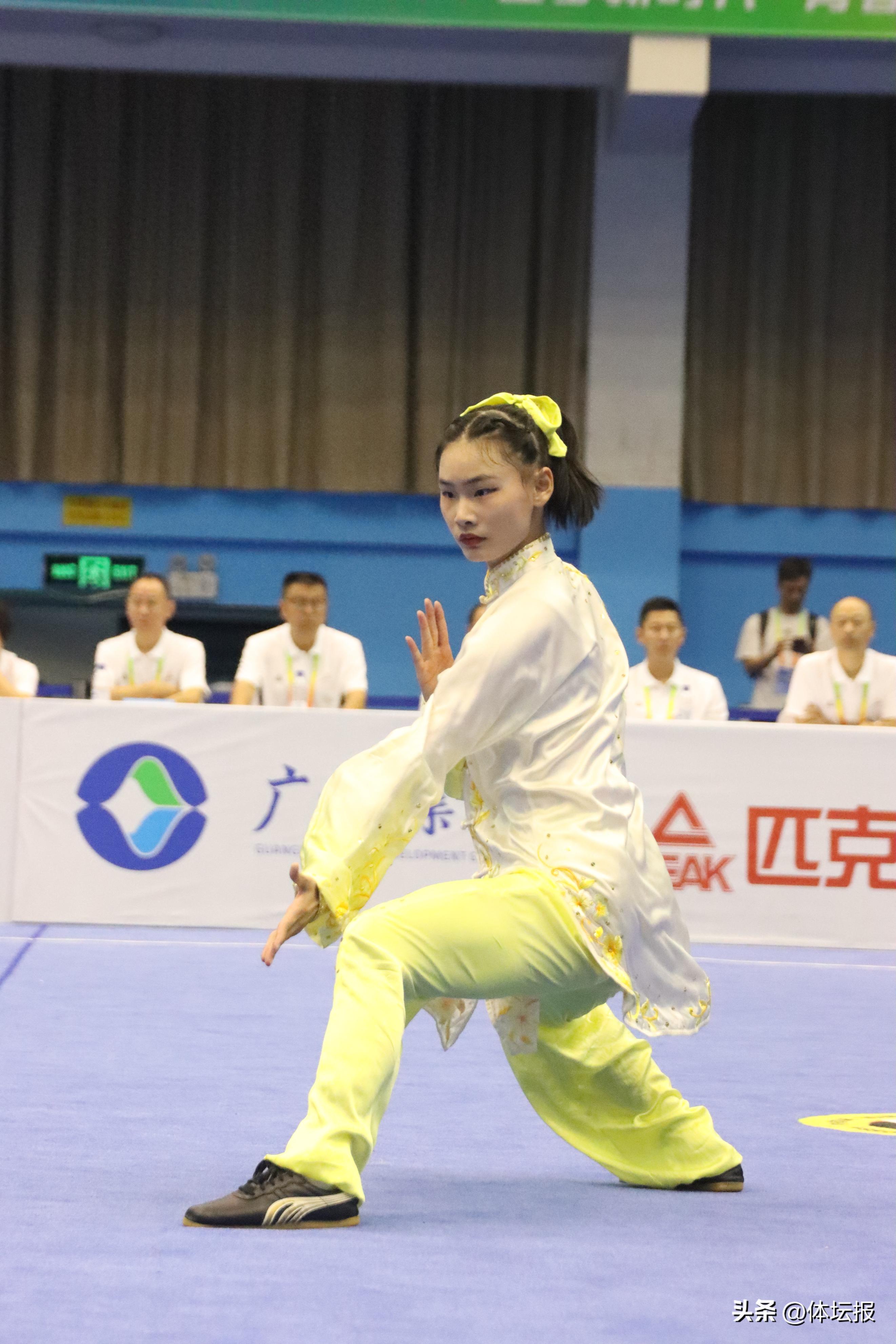11月6日,廣西體育館,首屆學青會校園組武術套路項目比賽在這裏展開第二天的角逐。上午,浙江省仙居中學高三學生金可馨在摘得中學組女子自選太極拳第一,下午舉行的中學組女子自選太極劍上,她再度收穫季軍,最終以一金一銅的成績圓滿收官。