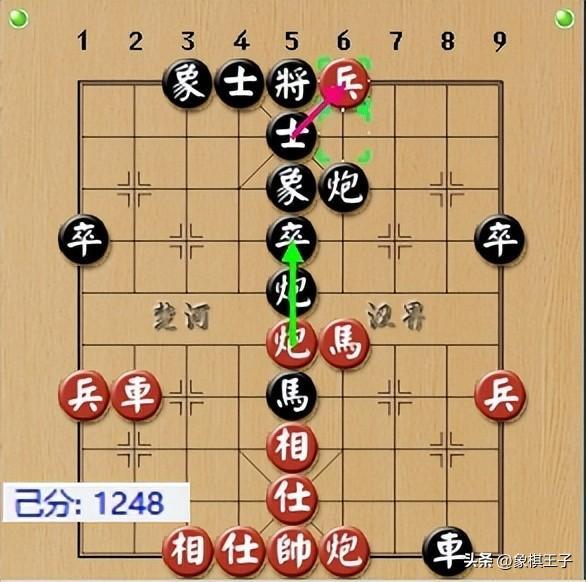 王天一失中兵下來,紅三路線上,暗伏先過三路兵,棄六路馬,不喫黑中炮的手段。