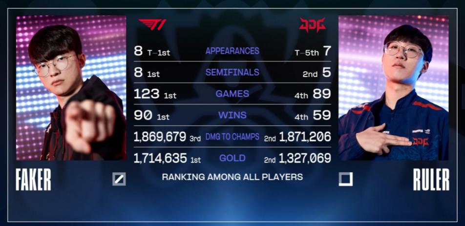 英雄聯盟S13全球總決賽二分之一決賽第二場,LPL賽區JDG對陣LCK賽區T1,最終T1擊敗JDG,總局分爲3比1,T1成功晉級S13總決賽。