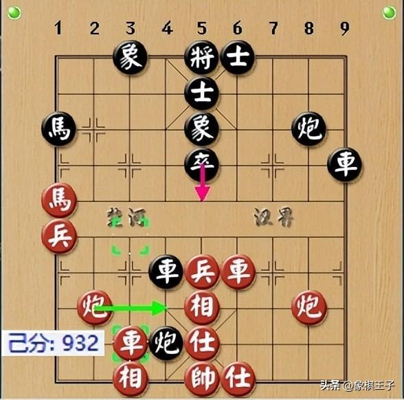 黑方左馬揮出後,交兌紅馬,再衝上邊卒,以求嚴守,紅方敏銳的發覺黑棋右側的漏洞。