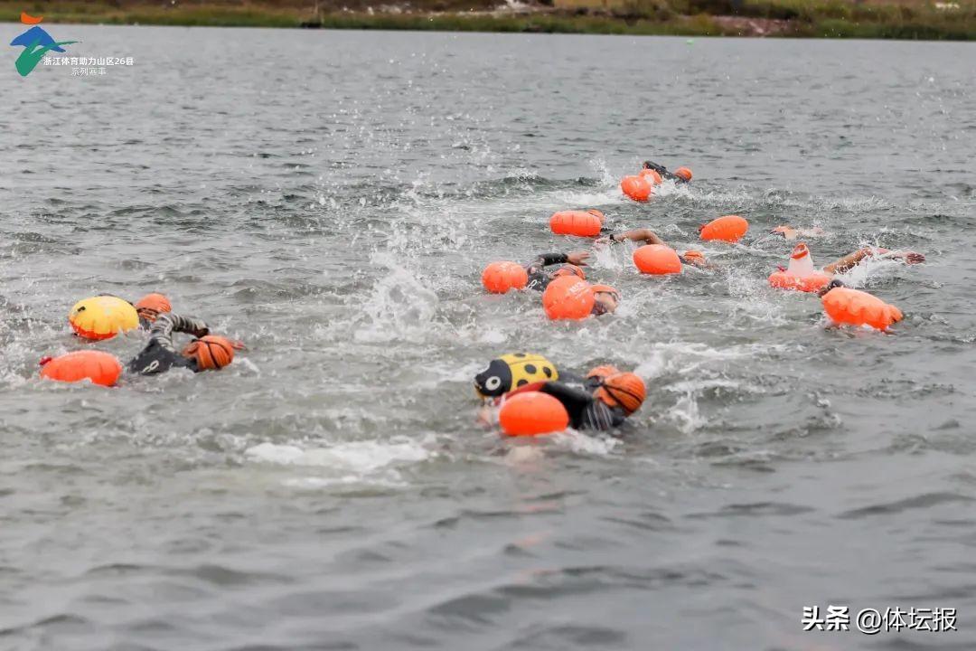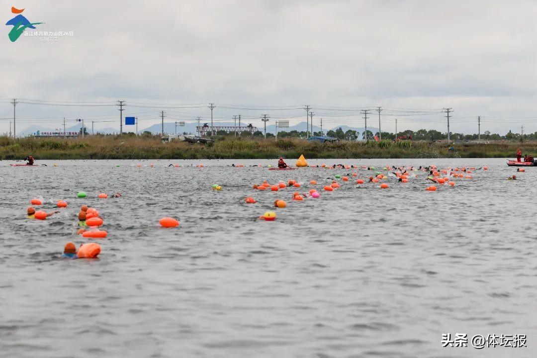“3、2、1”,伴隨着一聲汽笛聲響,參賽選手飛身跳入三門縣濱海新城金鱗湖稍顯寒冷的湖水中,水面上彩色泳帽若隱若現,白色浪花翻騰飛舞,成爲一道道靚麗風景。這般劈波斬浪、奮勇爭先的角逐場景就出自11月12日舉行的首屆三門縣環金鱗湖鐵人三項公開賽的現場。
