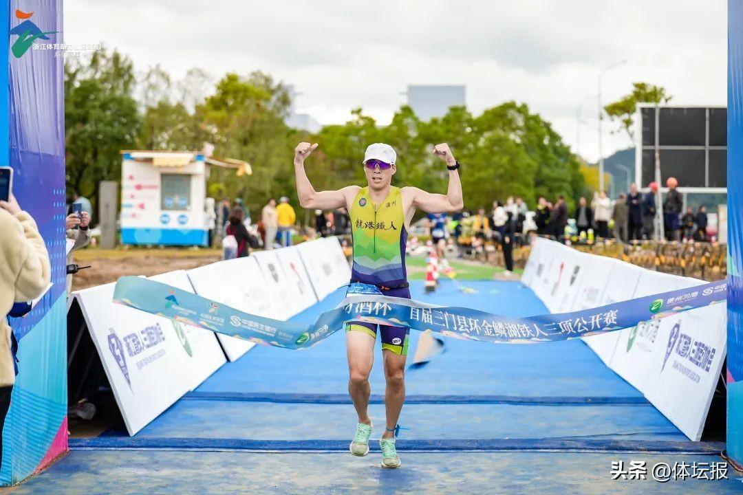 “三門這條賽道跑起來非常舒服,我今天在這裏賽出了個人最好成績。”經過0.75KM游泳,20KM騎行以及5KM跑步,總計25.75KM的考驗,來自溫州龍港鐵人俱樂部的蔡成增首個衝過半程終點,奪得半程男子18-39歲組冠軍。