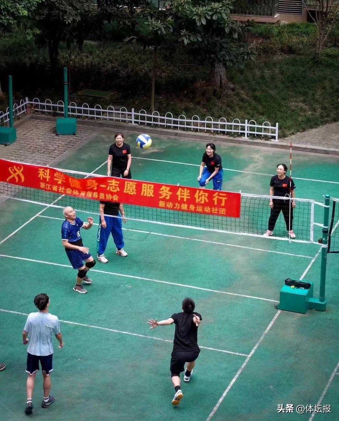 社團負責人奚旺泉介紹,他們不僅是運動團隊,也是一個志願者團隊。“東新街道有16個社區,轄區需要的志願者比較多。所以我們運動社團就主動加入到志願隊伍裏去。”平日裏,除了氣排球普及傳播以外,團隊與區殘聯、街道工療站緊密聯繫,每週上門開展氣排球、柔力球、健身操、兜球的點對點示教,培養幫扶對象動手、動腳協調能力,提升他們的自主能動性,使他們感受到社會的關懷和溫暖。