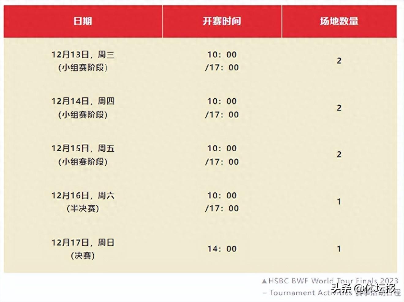 目前,世界羽聯官網已經更新了賽事信息,本次總決賽的logo都是三潭印月的剪影,賽事背景圖也是西湖,展現出了濃濃的杭州元素。官方也正式公佈了此次比賽的賽程。屆時,國內外一衆羽毛球明星齊聚,開展巔峯對決。