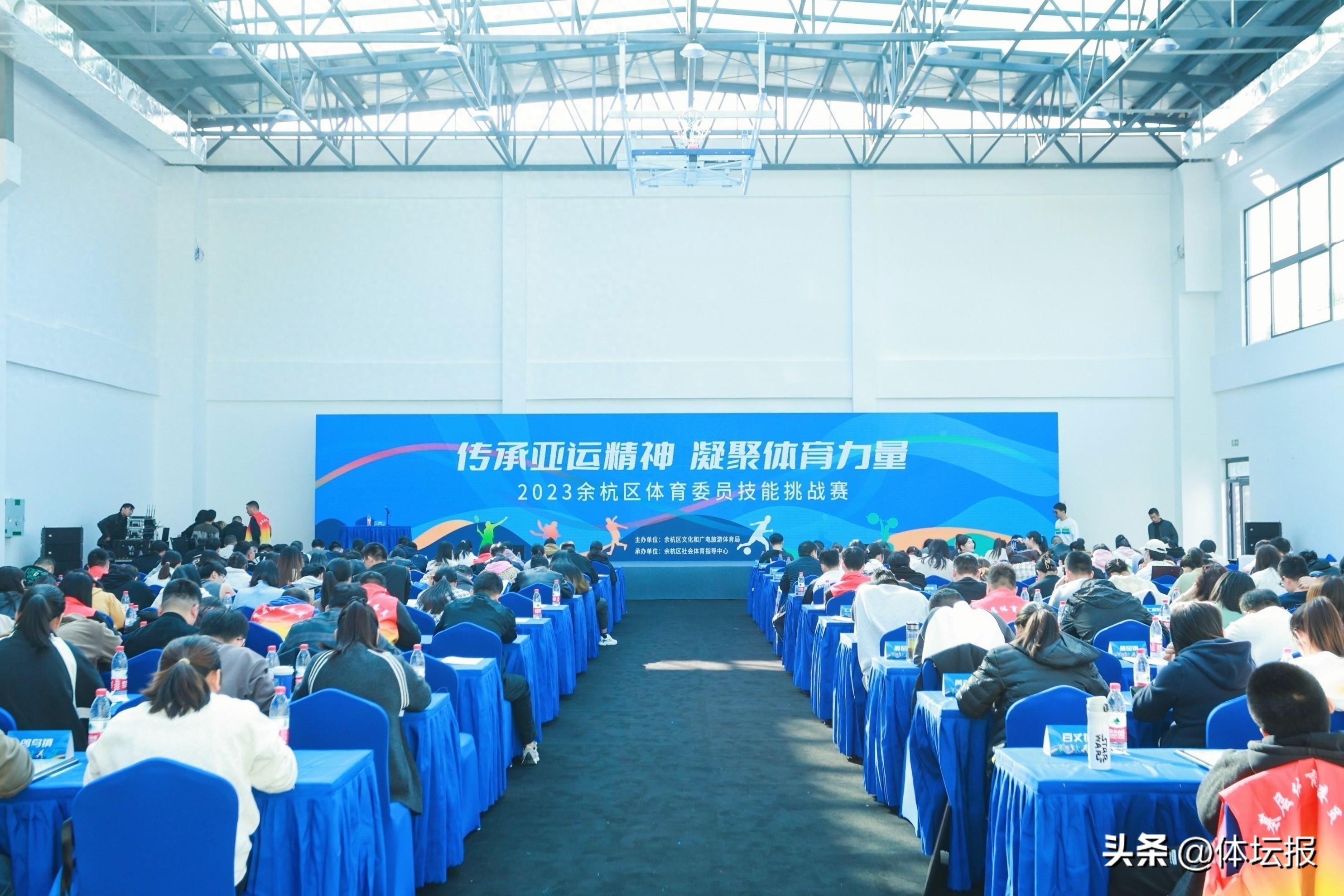 本次活動由余杭區文化和廣電旅遊體育局主辦,餘杭區284名基層體育委員歡聚一堂,在這裏進行了一次技能比拼和工作交流。技能比拼項目既有跳繩、俯臥撐、坐位體前屈這樣考驗身體素質的項目,也有投擲飛鏢、曲線託球跑這樣的趣味項目,以及需要考驗團隊合作的“書寫篇章”“同舟共濟”等集體項目。