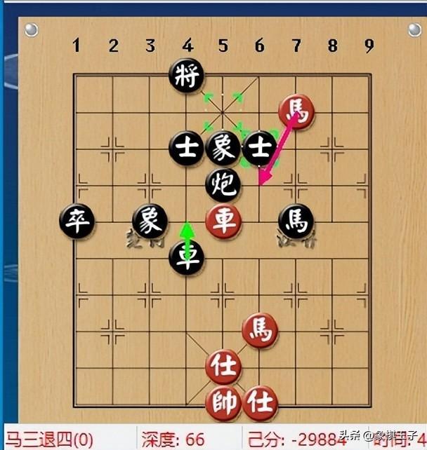 黑方當際多象兵種好,外星人天外飛仙的殘局神功體現,只見黑棋聯調車馬炮三子,左右飛動,中線閃擊,把紅車晃的只能在中路防守。