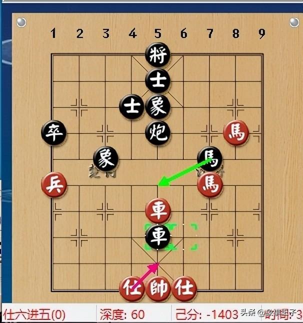 紅方想策動一馬,撲襲臥位,形成牽制,王天一根本不理,黑直線點車進來,宮頂位上斬殺紅殘相,紅兩相盡失,局勢大危。