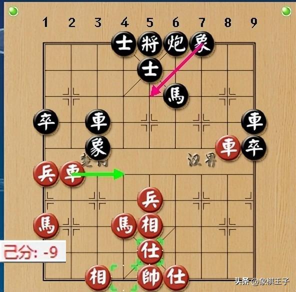 王天一將計就計,卒9進1,輕上邊卒,引誘紅棋捉馬,紅真的來捉,黑馬迅速踩進,再喫邊兵,踏兌紅炮。