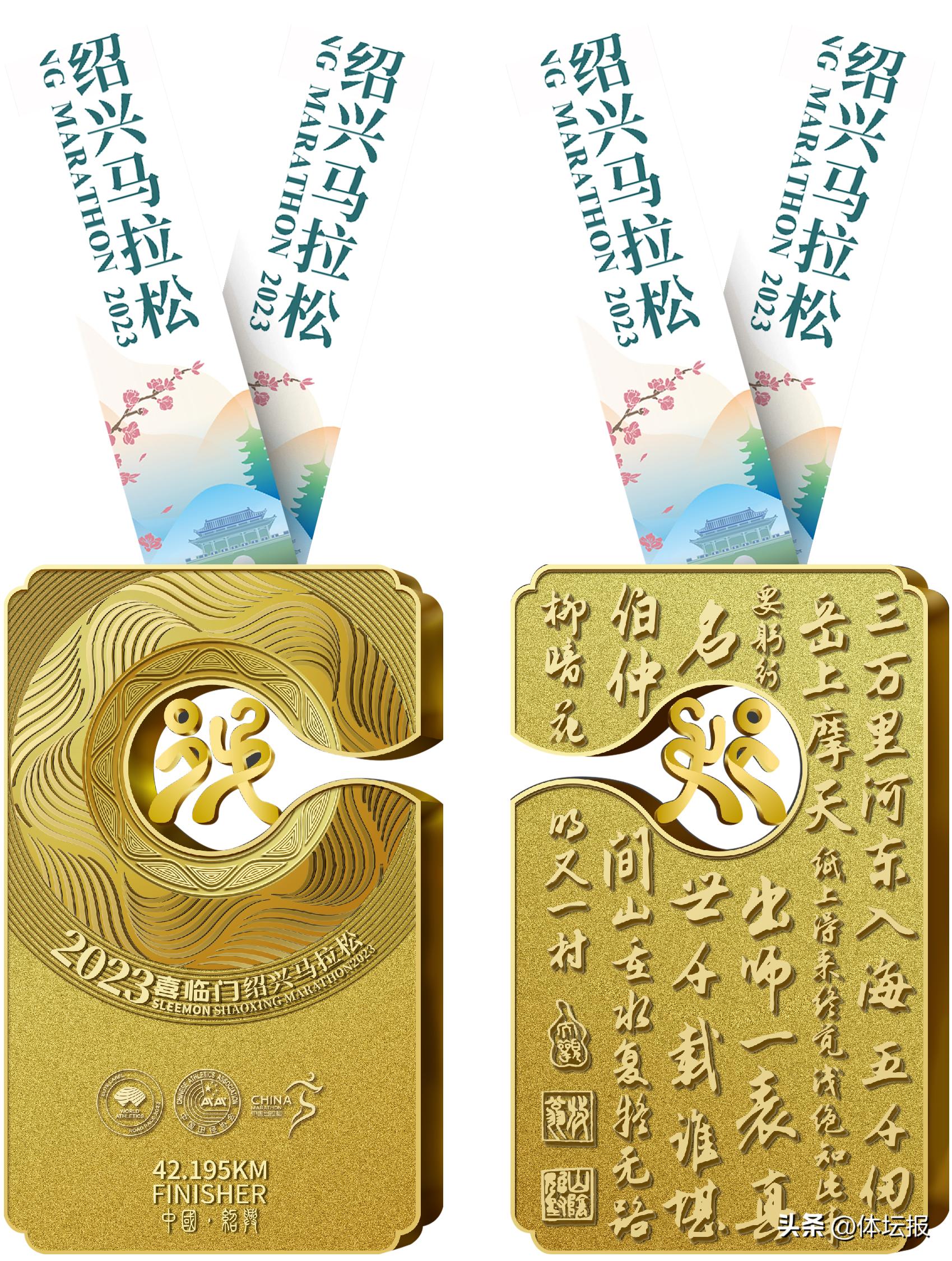 記者瞭解到,今年越馬的完賽獎牌以陸游的家國情懷和愛國主義精神爲內核,整體造型是在陸游紀念館大門形狀的基礎上加以修飾。獎牌正面結合皇帝賜予身份象徵的金魚袋紋樣,以及陸游喜愛的梅花,和紹興江南水鄉特色的水紋呈現。獎牌背面以陸游的詩詞名句爲背景,象徵歷史對陸游一生的評價概括,也是對紹興這座古城歷史文化底蘊的呈現。服裝設計則以陸游所酷愛的“梅花”作爲元素,“梅花精神”作爲陸游等一衆文人墨客所愛歌頌的精神品質,也呼應“文化越馬”的主題,衣服整身漸變,突顯紹興江南水鄉韻味,並以梅花+跑道元素組成新的無界環形圖形,象徵跑者對於跑步運動永無止境地探索。
