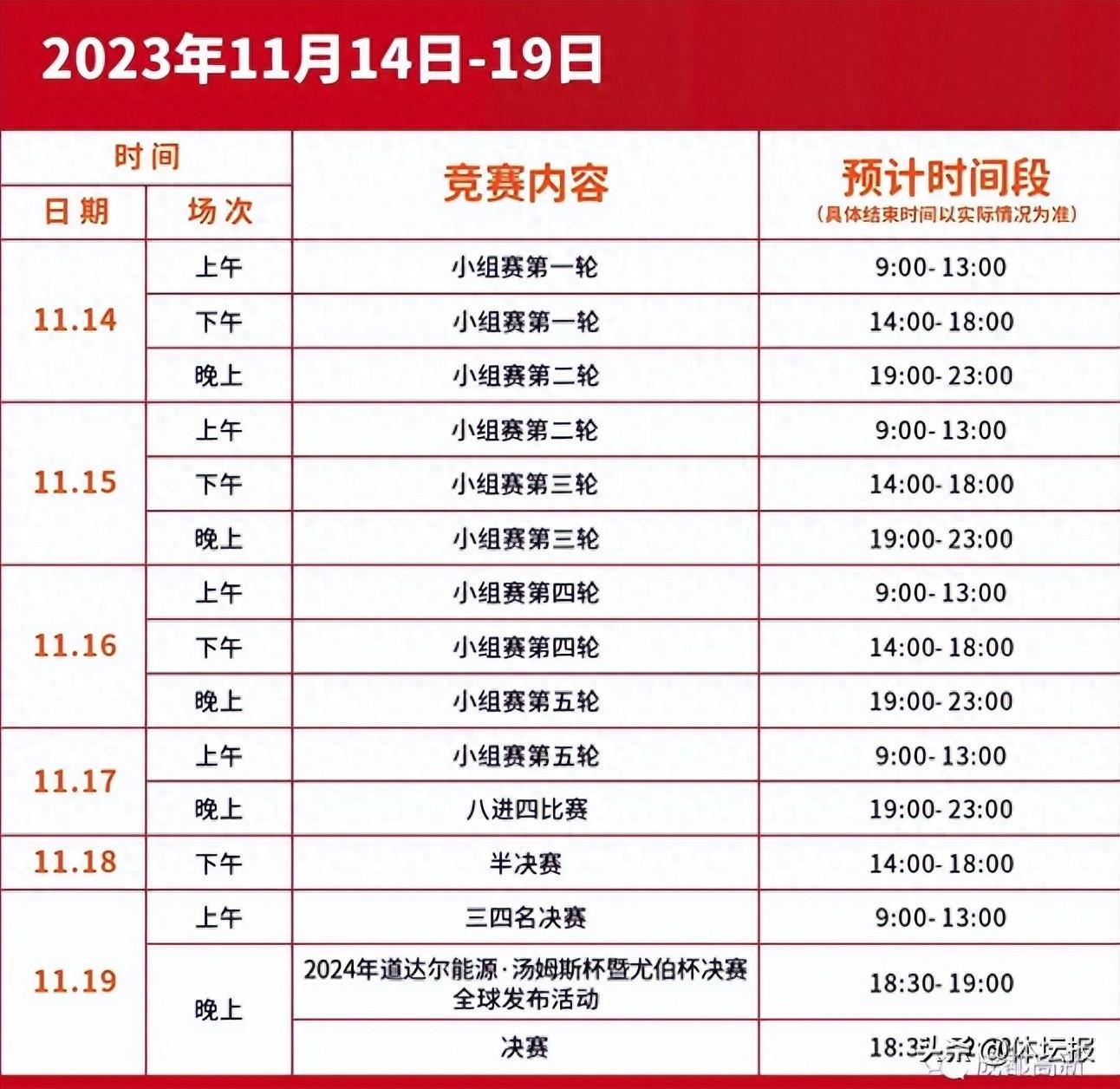 作爲2024湯尤杯羽毛球錦標賽的前哨站,11月19日決賽當天,賽場還將舉行2024年湯姆斯杯暨尤伯杯決賽全球發佈活動,將發佈賽事會徽和口號等內容。