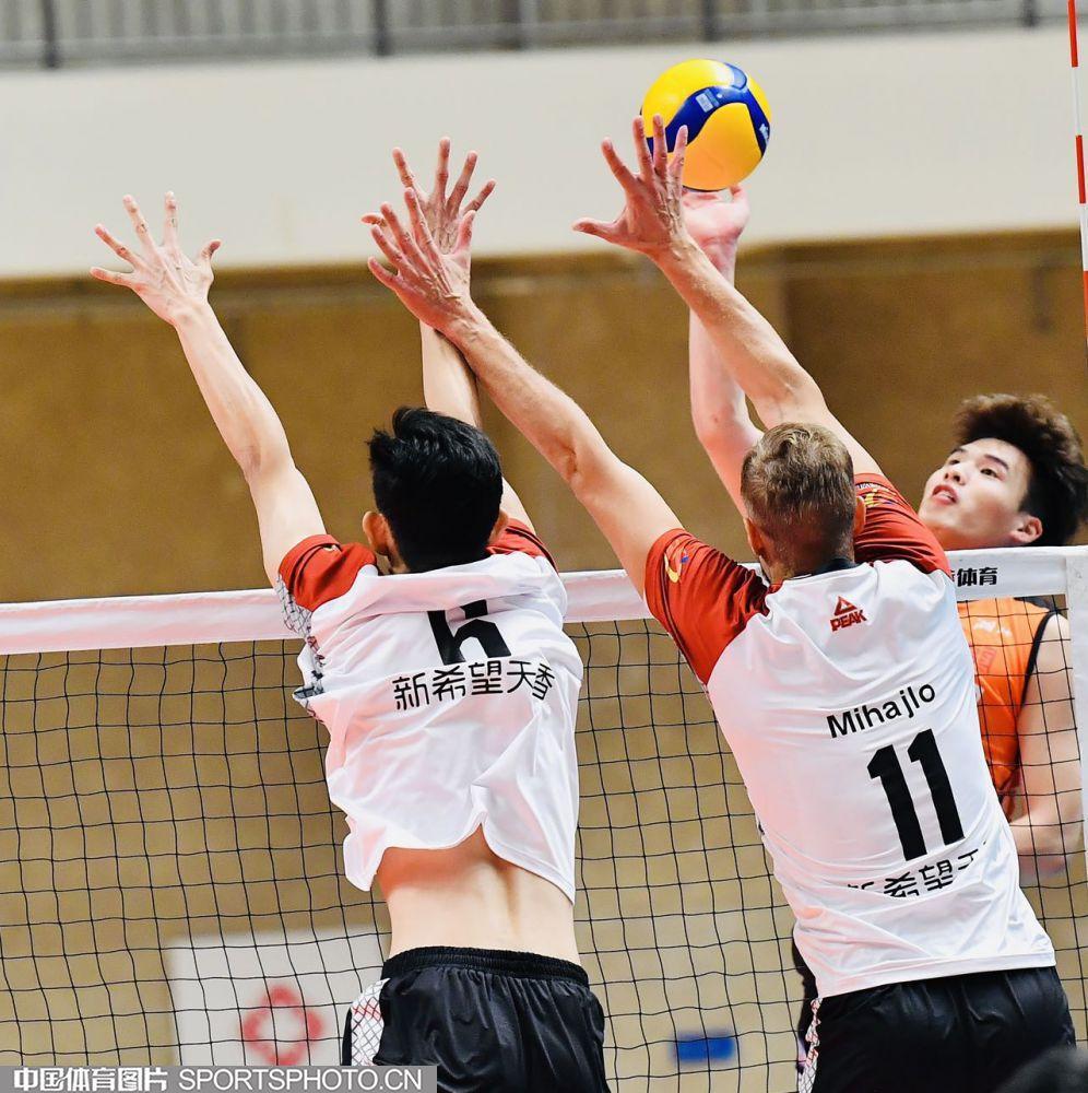 中國體育訊 11月16日,2023-2024中國男子排球超級聯賽第一階段第二輪的一場比賽,在河北保定河北農業大學(西校區)體育館舉行,河北保定沃隸3比0擊敗湖北黃石東楚。圖爲比賽現場。(中國體育圖片 劉亞茹 攝)