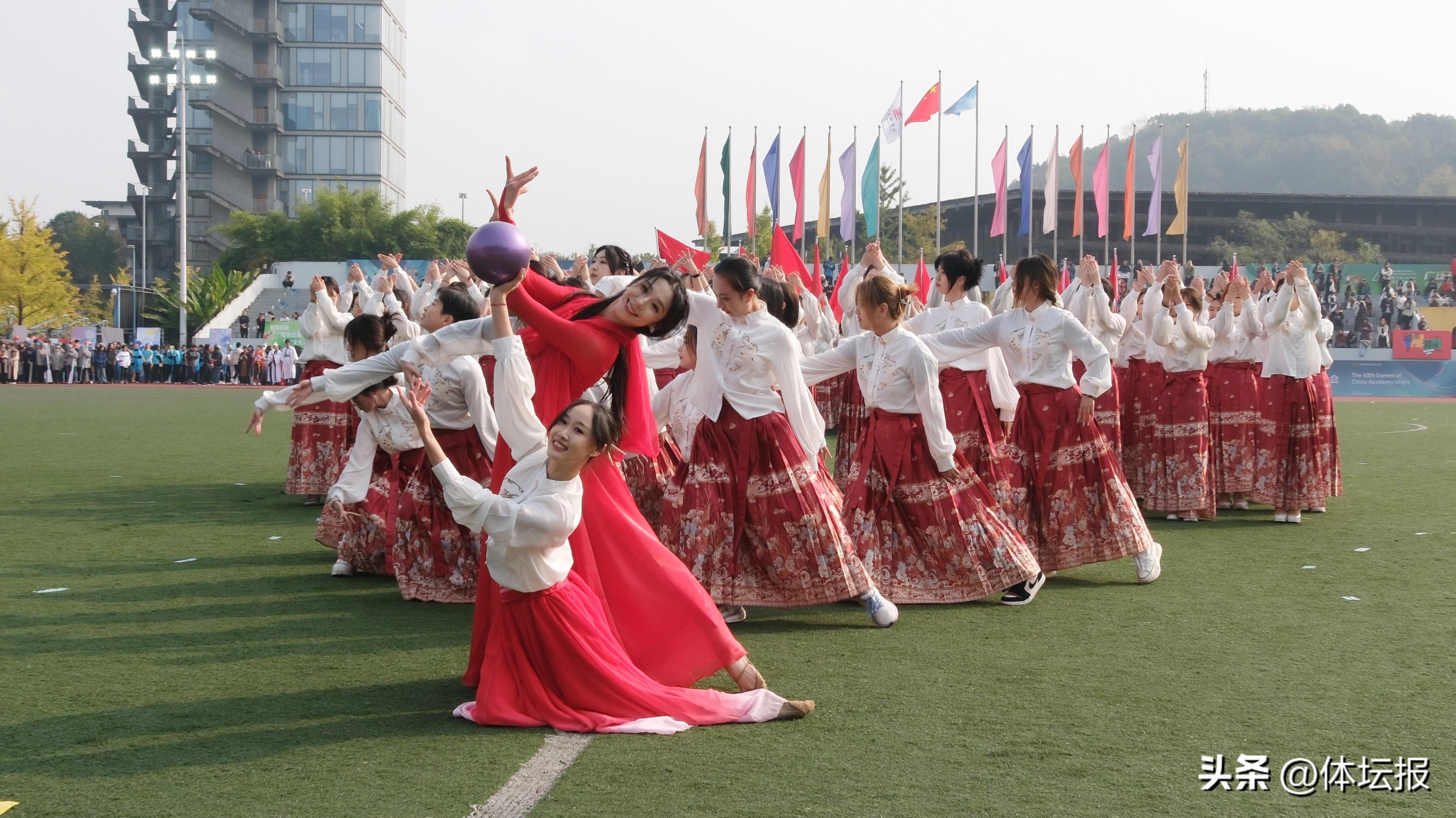 本次開幕式一同表演的還有來自中國美術學院體育部的韓雨晴。她告訴記者,今年的開幕式,正值中國美術學院建校95週年華誕,因此選用了紅色舞曲《無悔華夏 敬萬疆》作爲開場表演。伴隨着這首激昂的旋律,表演者們身穿紅色舞衣,用中國風與藝術體操動作的結合、激情洋溢的舞蹈展現出華夏兒女的豪情壯志。這個開場表演不僅爲整個運動會增添了濃厚氛圍,也向全校師生和嘉賓展示了美院學生的藝術才華和精神風貌。