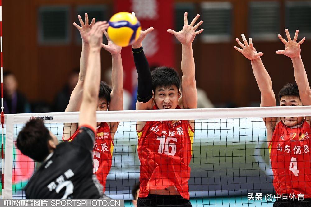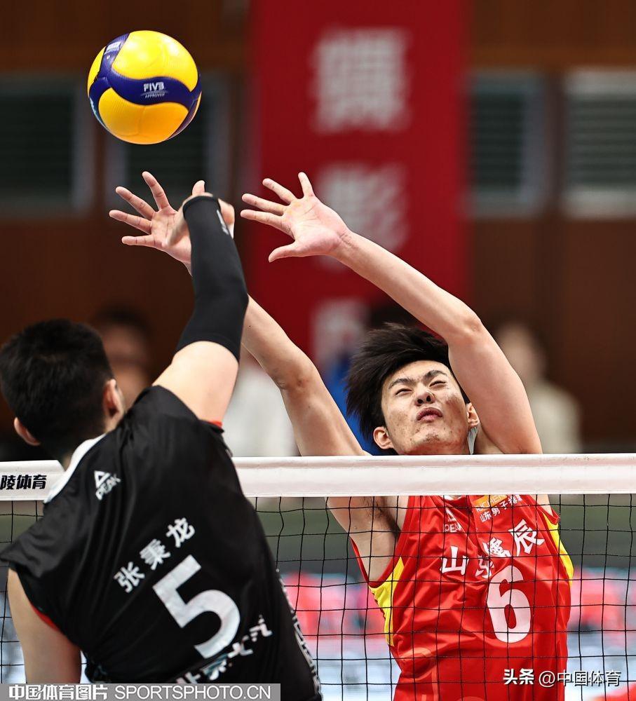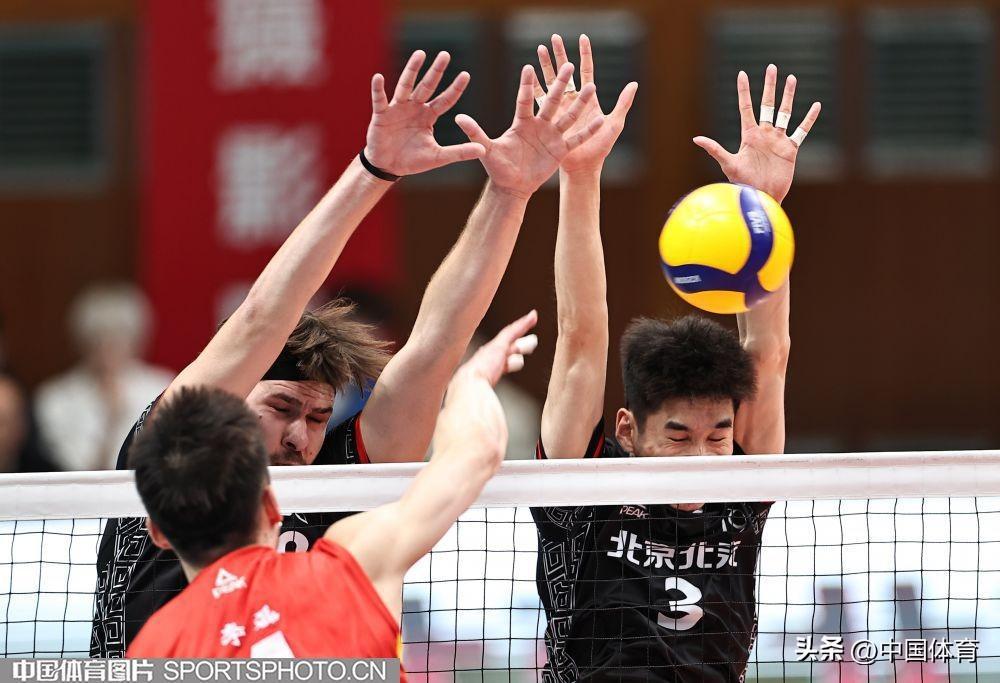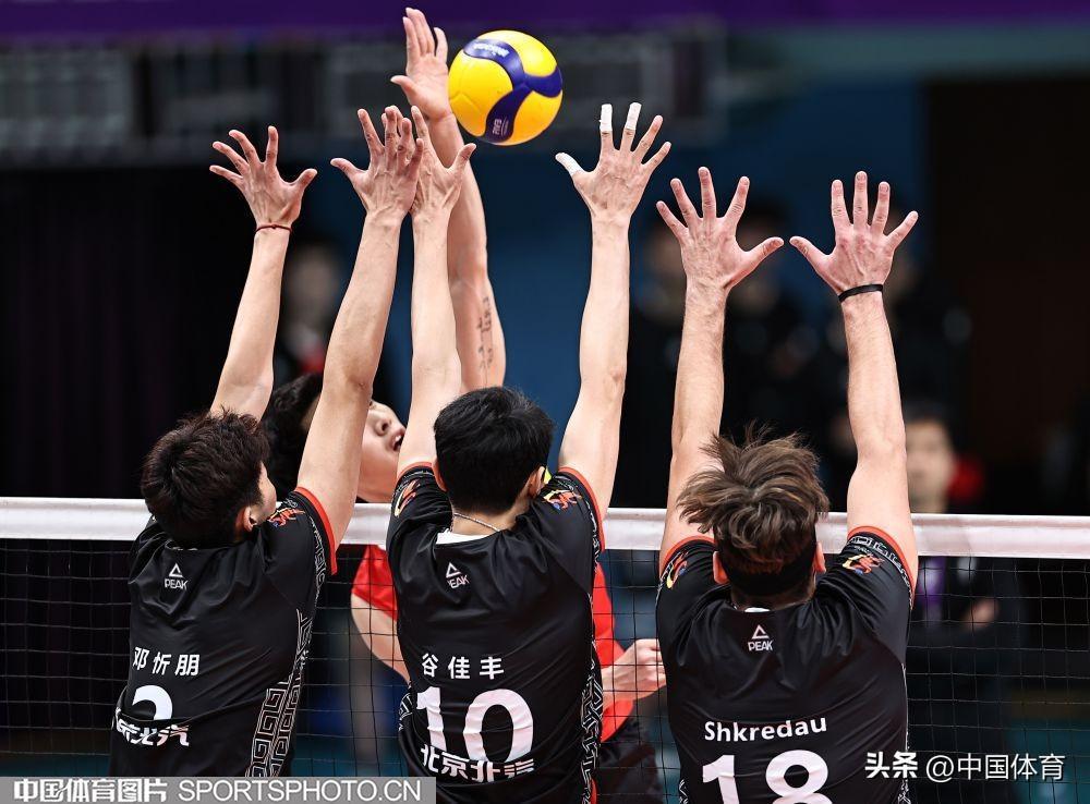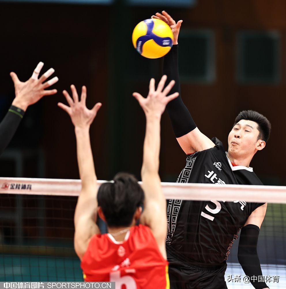 中國體育訊 11月19日,2023-2024中國男子排球超級聯賽第一階段第三輪的一場比賽,在北京汽車光彩體育館舉行。北京北汽主場3比1戰勝山東儒辰,取得新賽季兩連勝,四局比分分別爲25比19、26比24、17比25、25比18。(中國體育圖片 王憲民 攝)