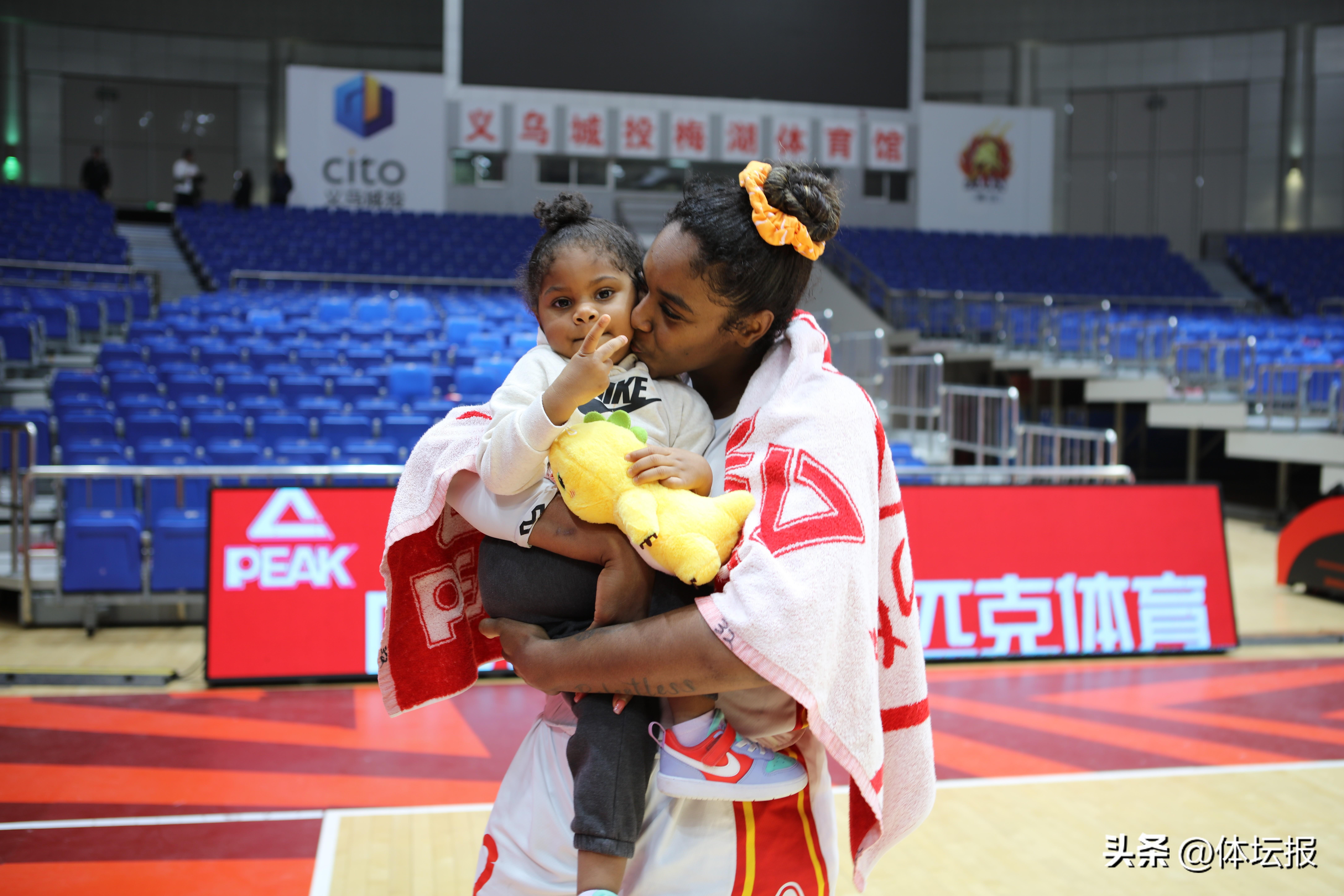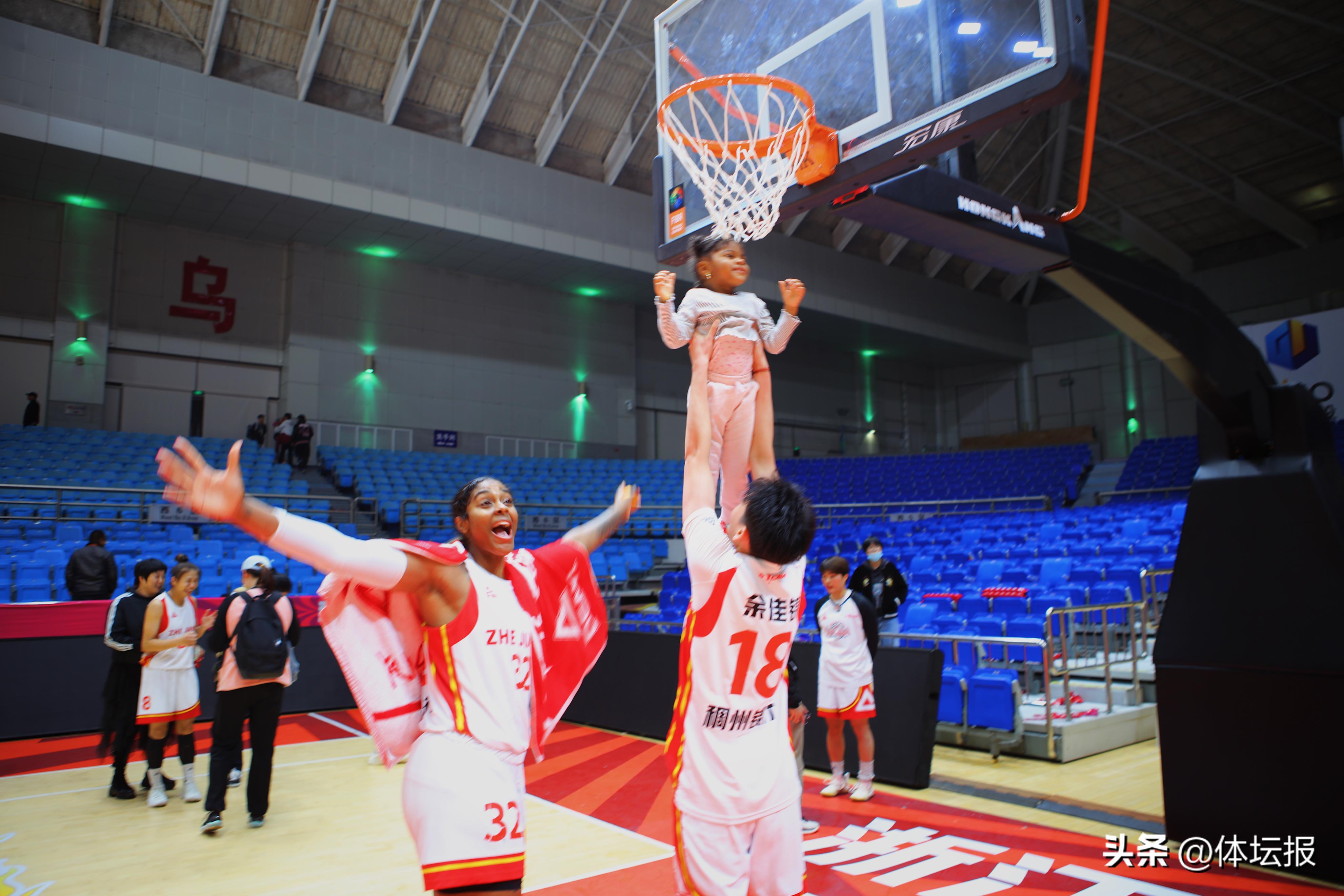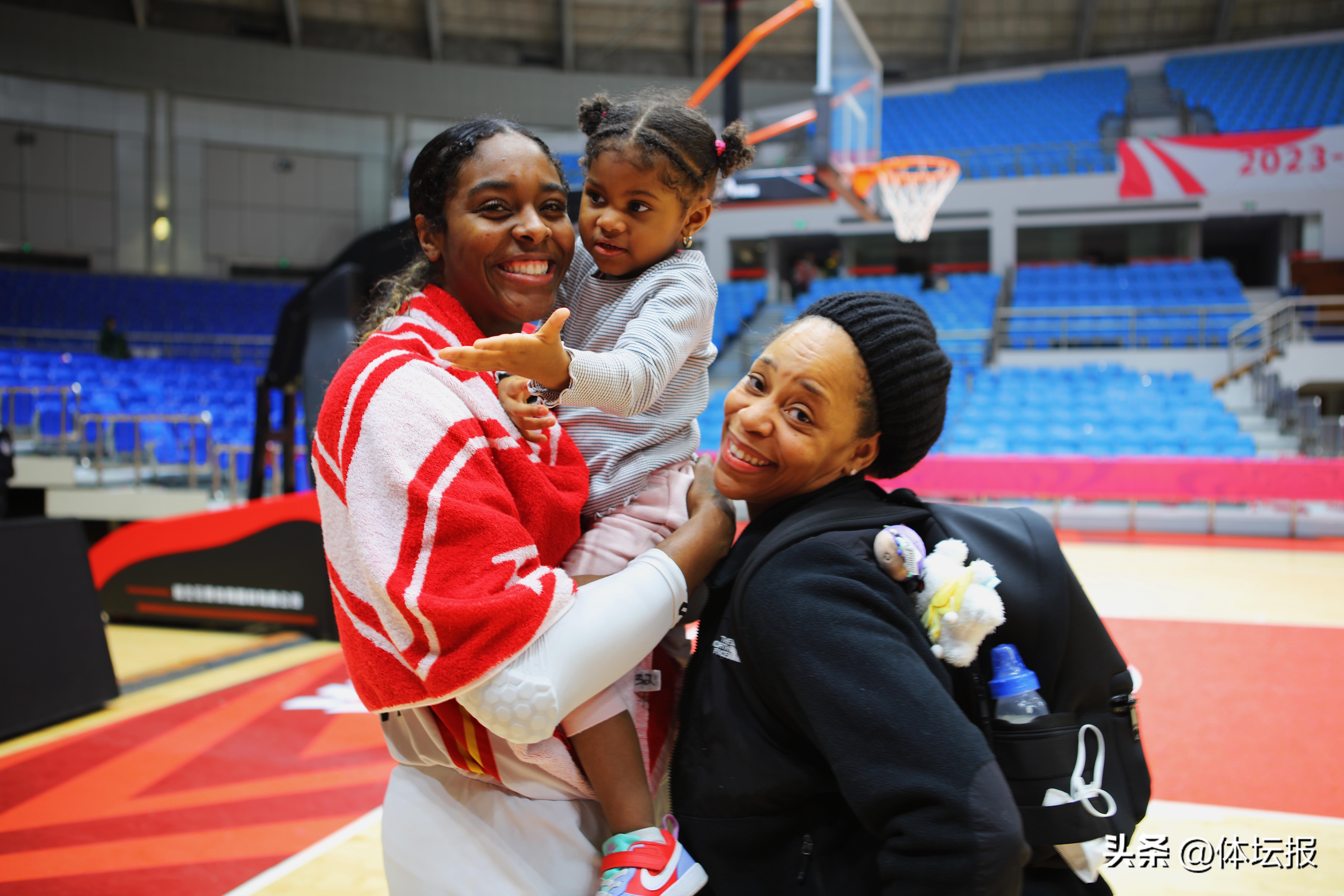 nana如今儼然浙江女籃的“團寵”,比賽結束她常常會走進球場,和隊員們互動玩耍,而她最愛的遊戲就是“舉高高”摸籃網。作爲一個不怕生的“社牛”寶寶,也總是可以看到她開朗地和現場觀衆、記者打招呼。