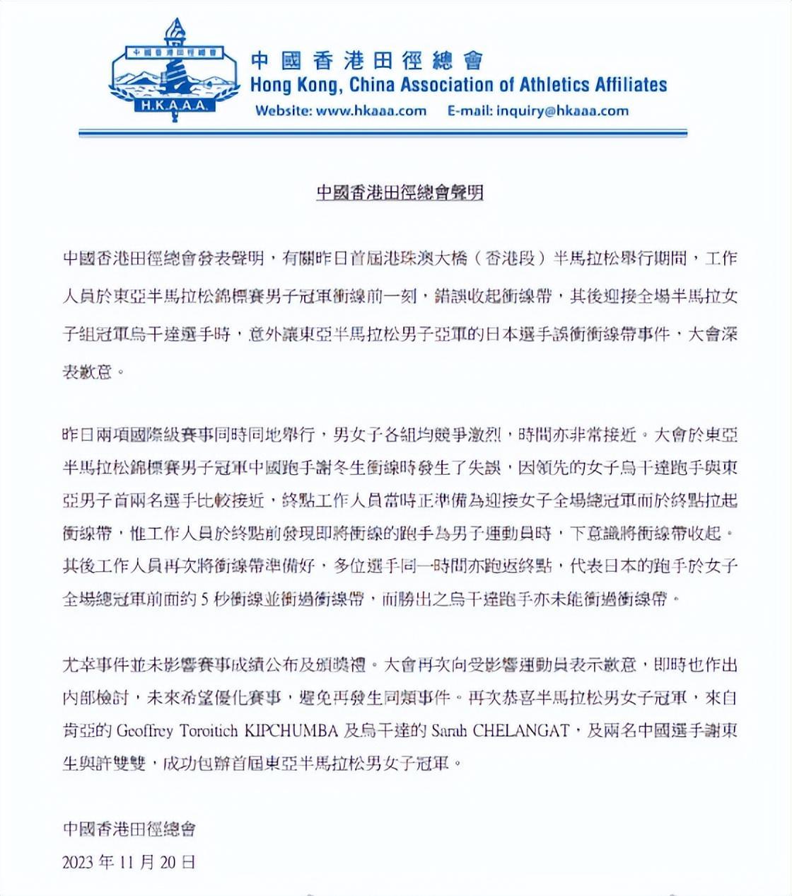 此事發生之後,輿論迅速發酵,很多網友也聯繫到之前的大連馬拉松賽,中國選手被引導車攔路失去登上領獎臺的機會,雖然這一次,冠軍屬於中國,但衝線那一刻的榮耀卻被生生奪走。目前,中國香港田徑總會也正式發聲明道歉,表示會實時作出檢討,未來避免發生同類事件。