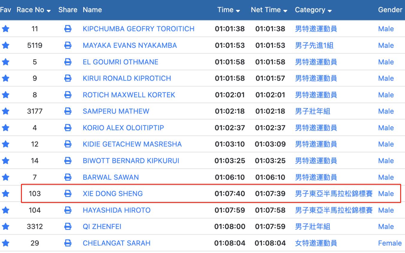 而且看看最終的成績單,這次賽事其實有很多不同級別和專業度的選手一起參加,謝冬生只是半馬男子組冠軍,在他之前還有10個特邀職業選手已經結束了比賽了,同時再加上男女運動員混到了一起,導致最後時刻場面比較混亂,最終讓亞軍的日本男選手撞線。