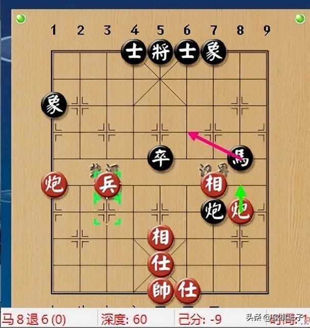 孟辰心中只有勝利,黑火線衝鋒,拉回前炮,撤退家中,以士象爲助,協力中卒過河,爾後黑橫卒卡住紅高相眼,揮馬定位。