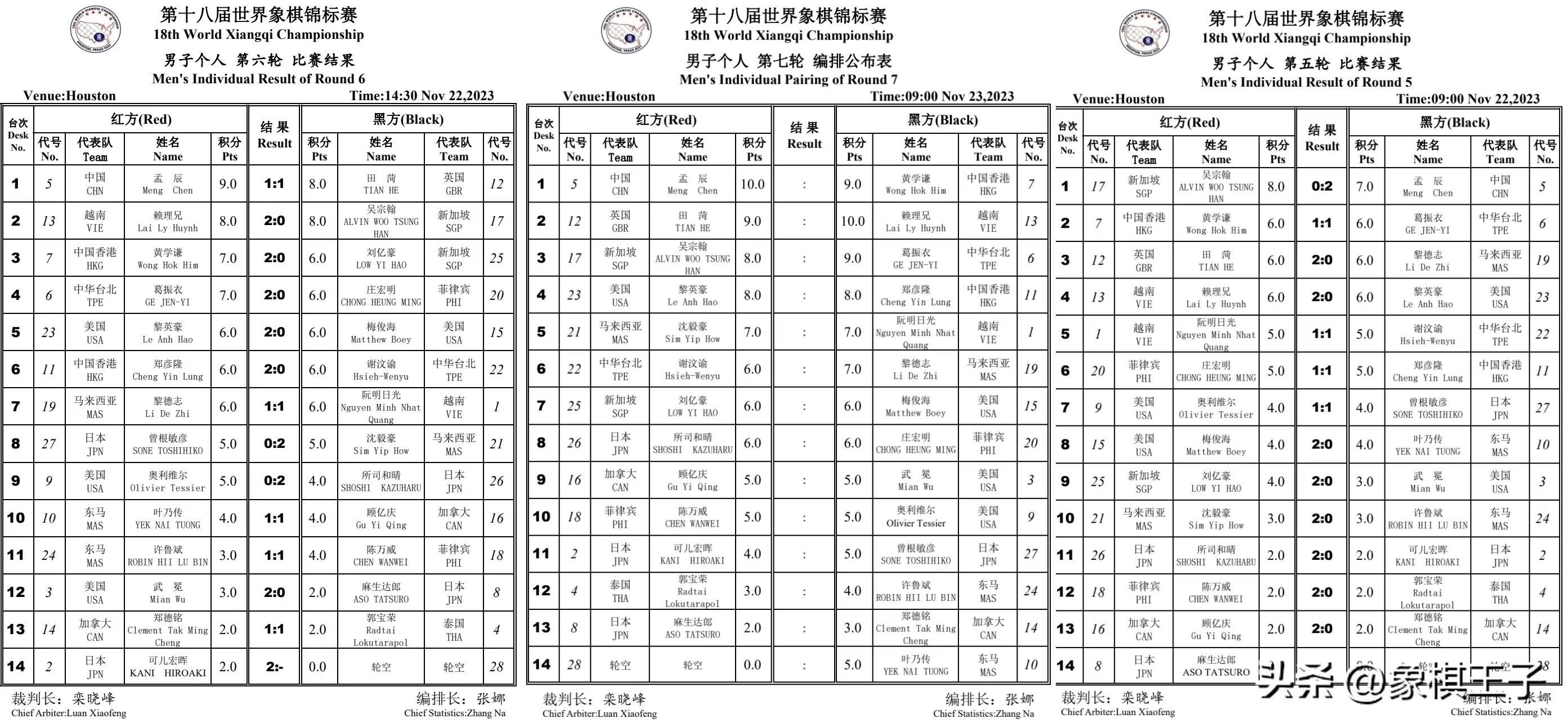 男子組之上,中國隊實力派超強悍將、特大殺手、等級分多次打進全國前三的孟辰,單日奪分時刻強取一勝一平,以六戰積10分,小分高居於第一。