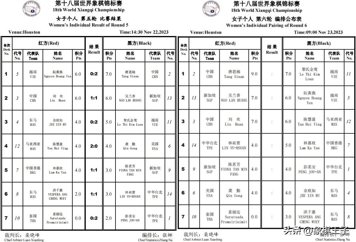 唐思楠奪得前五戰四勝一平積9分,多出身後棋手2分一個勝場,女子七輪積分,小仙女奪冠在望。