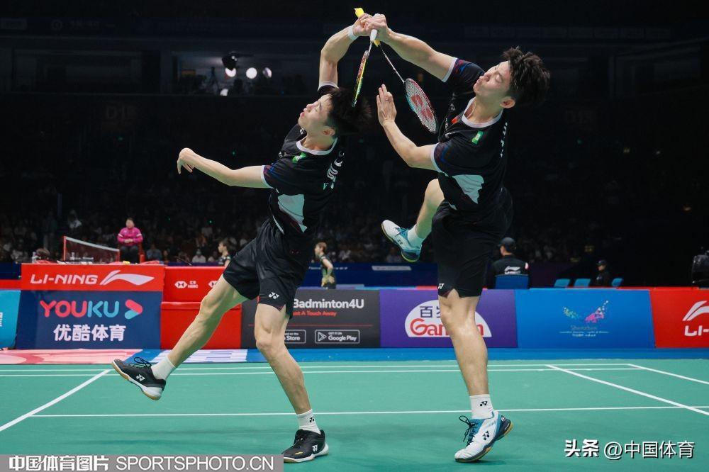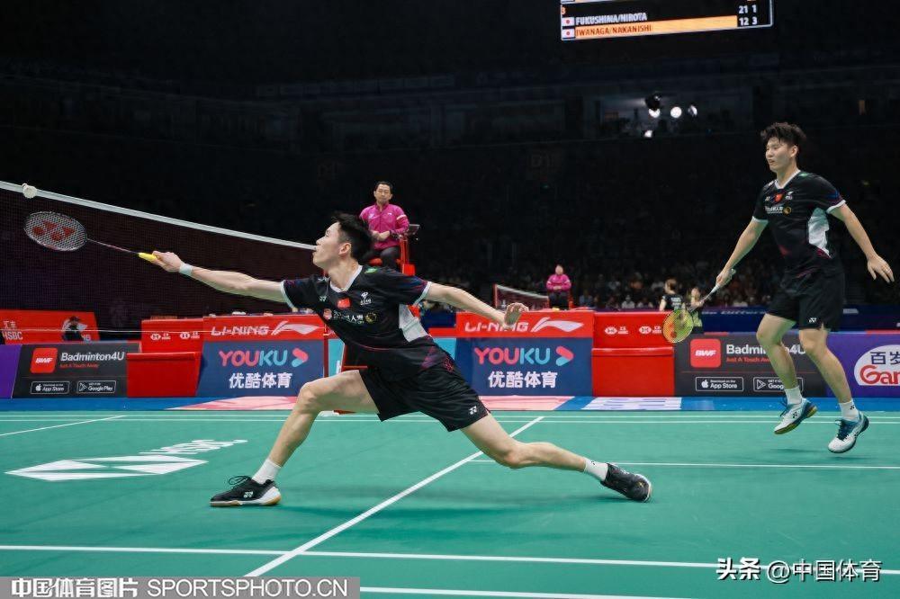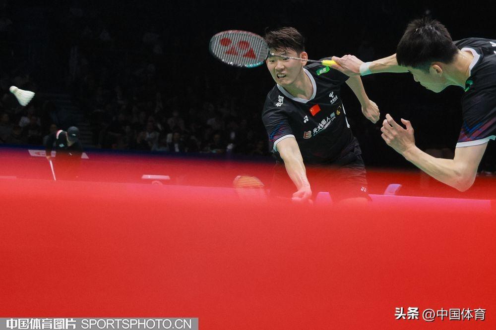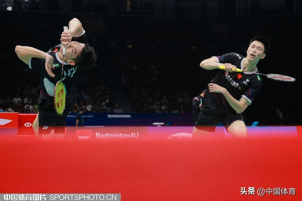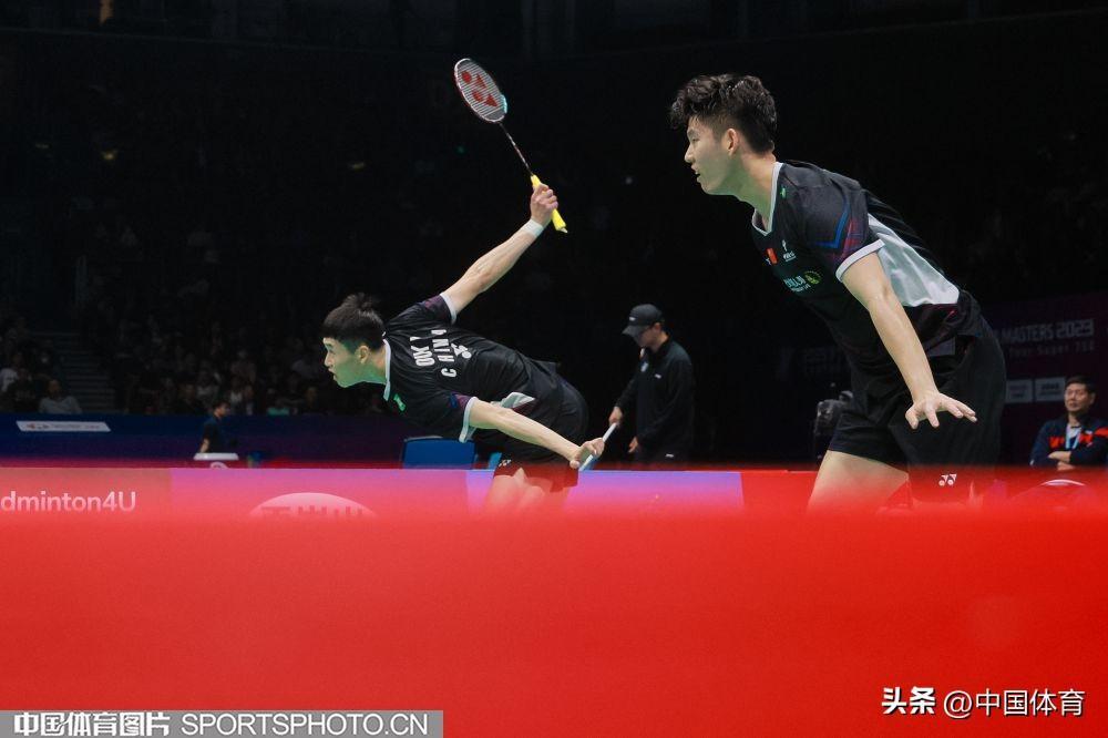 中國體育訊 11月23日,在2023中國羽毛球大師賽男雙第二輪比賽中,中國組合劉雨辰/歐烜屹以2比1(17比21、21比11、21比13) 戰勝馬來西亞組合萬偉聰/鄭凱文,晉級八強。圖爲劉雨辰/歐烜屹在比賽中。(中國體育圖片 鹿麟 攝)