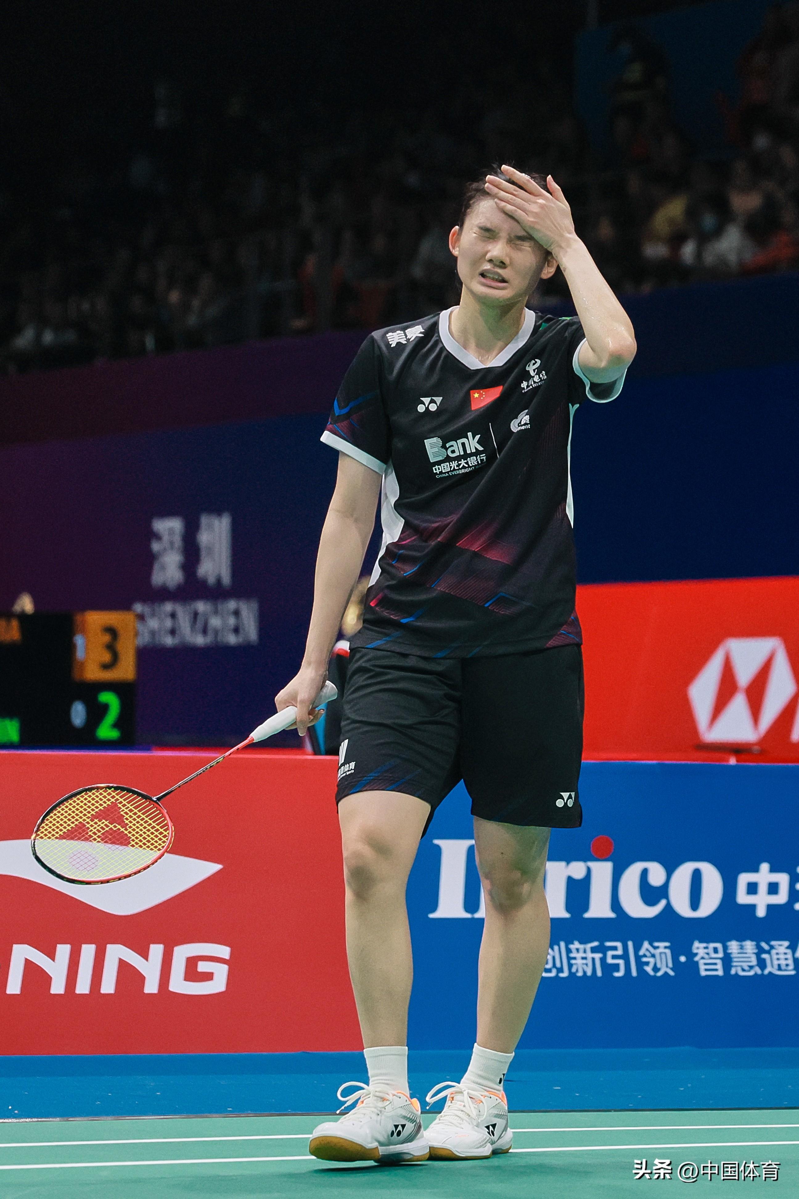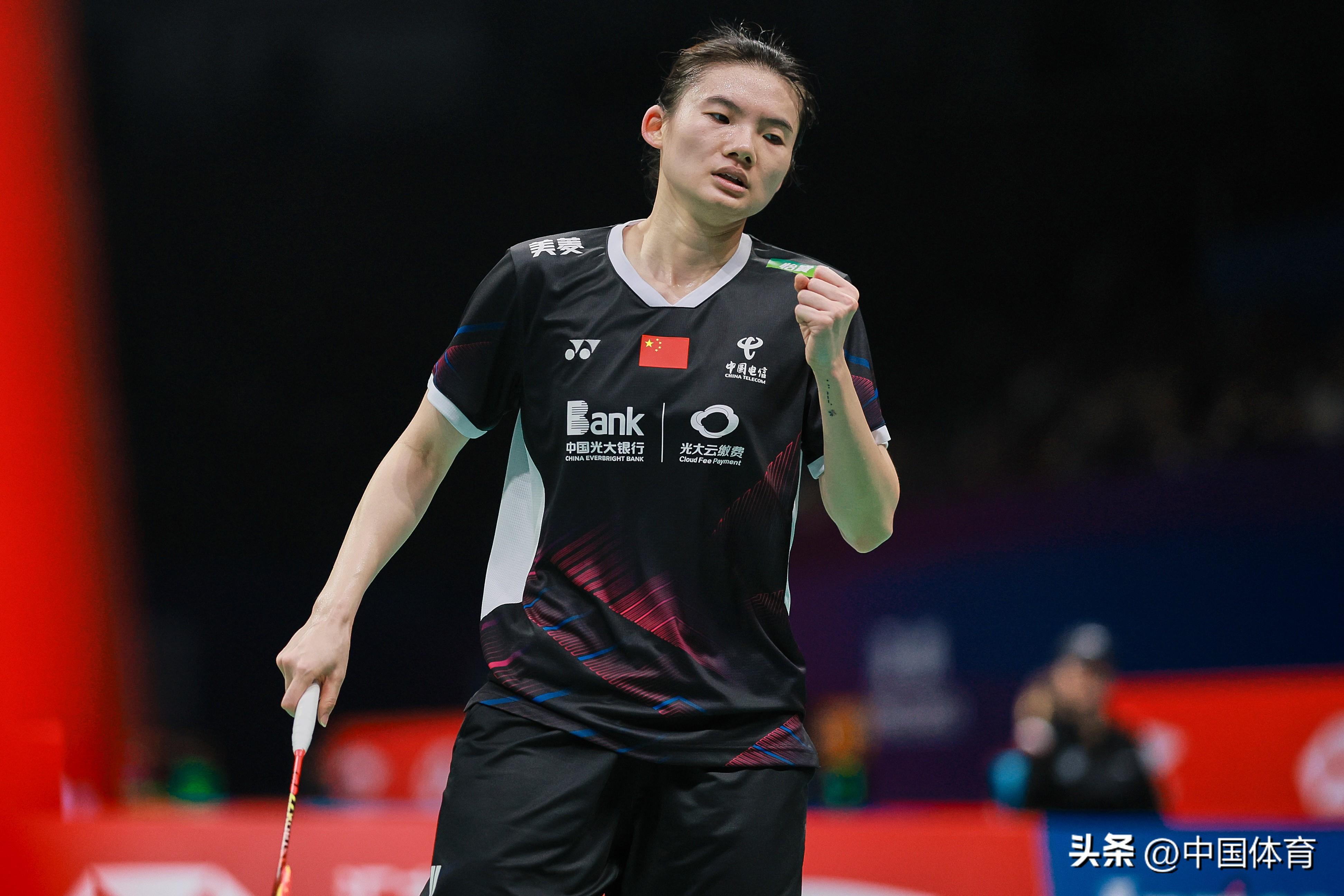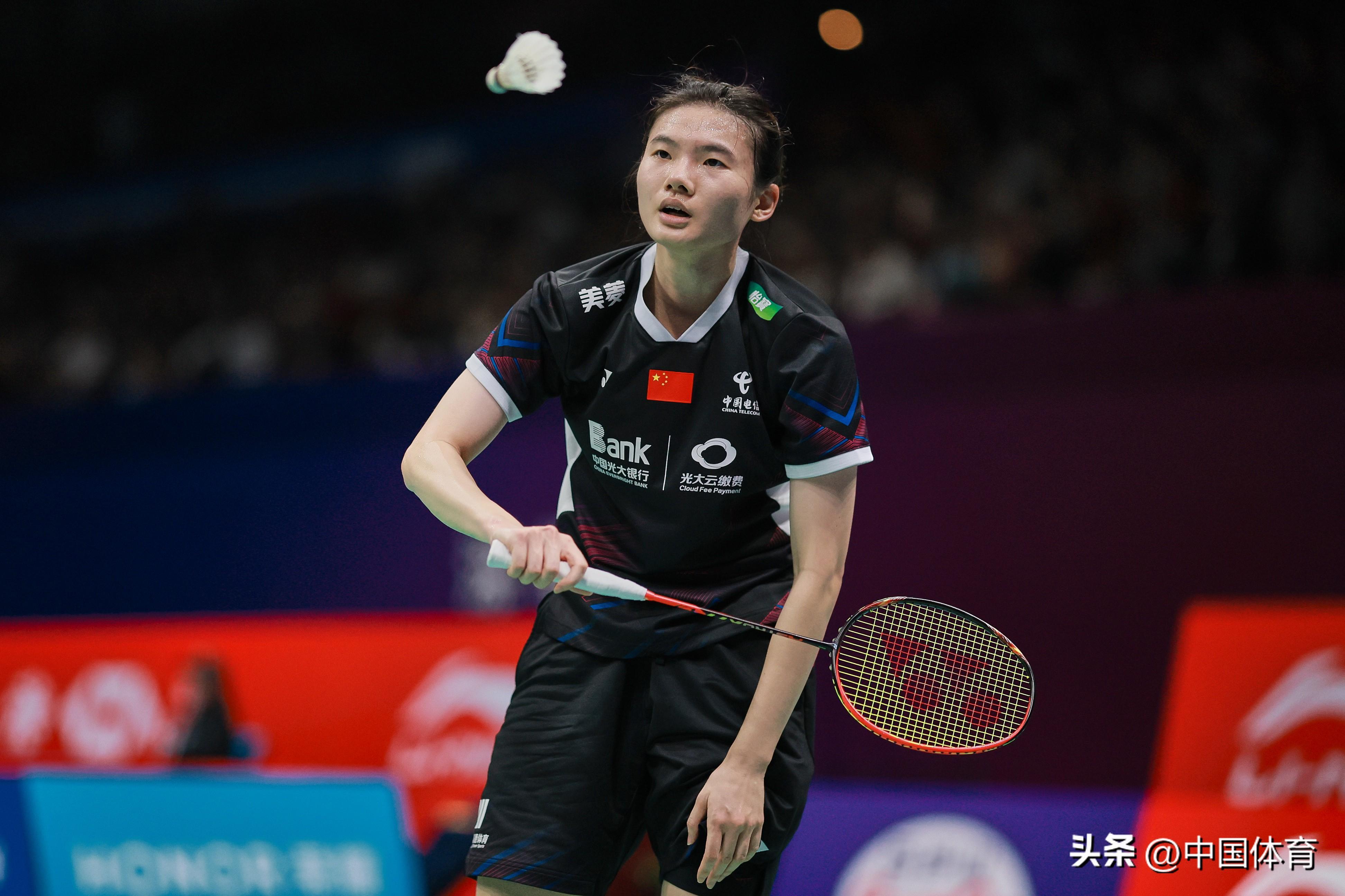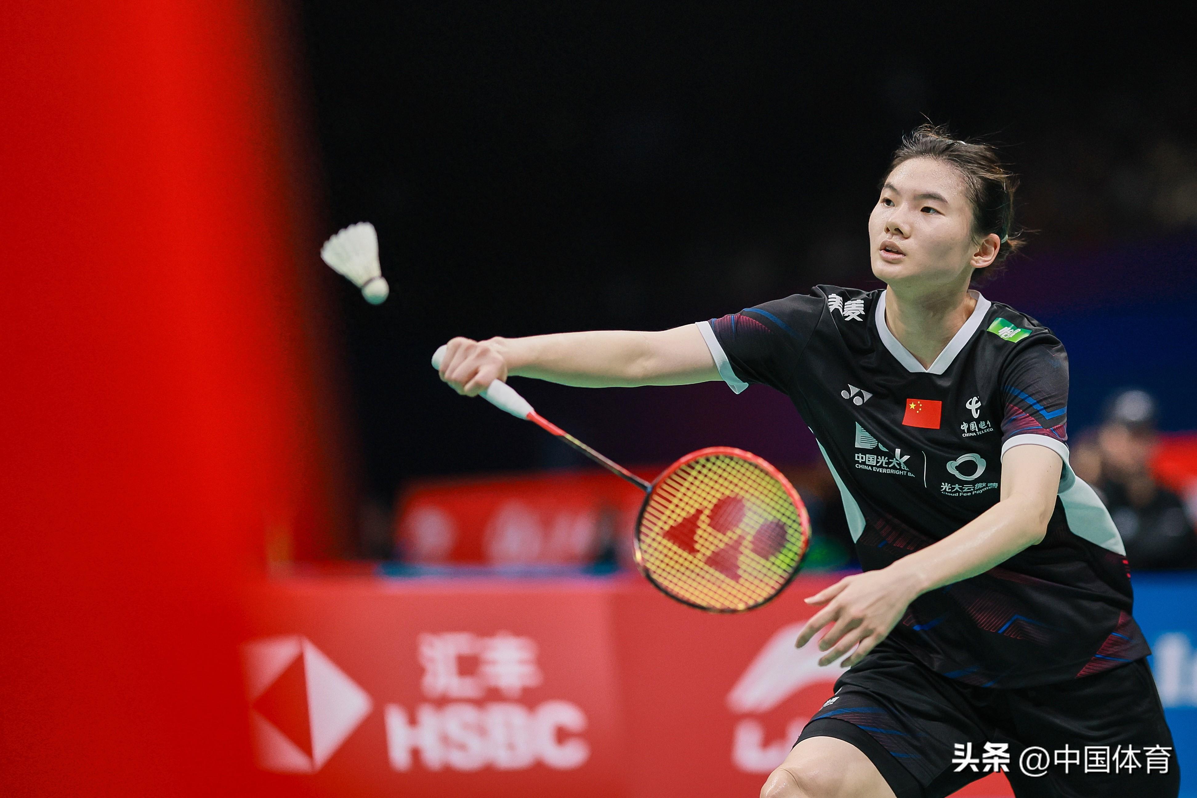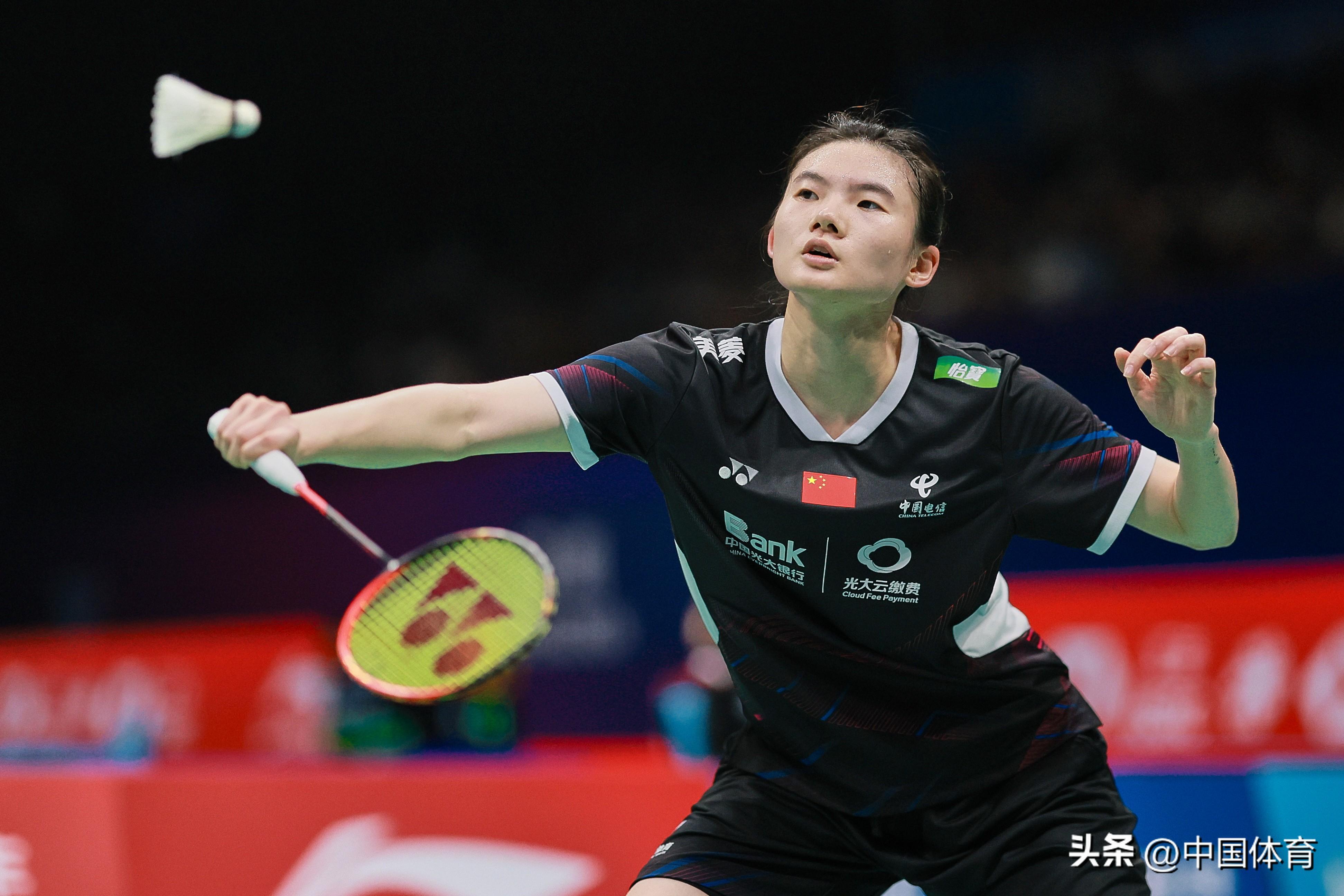 中國體育訊 11月23日,在2023中國羽毛球大師賽女單第二輪比賽中,中國選手韓悅以2比1戰勝新加坡選手楊佳敏(21比17、16比21、21比18),晉級八強。 圖爲韓悅在比賽中。(中國體育圖片 鹿麟 攝)