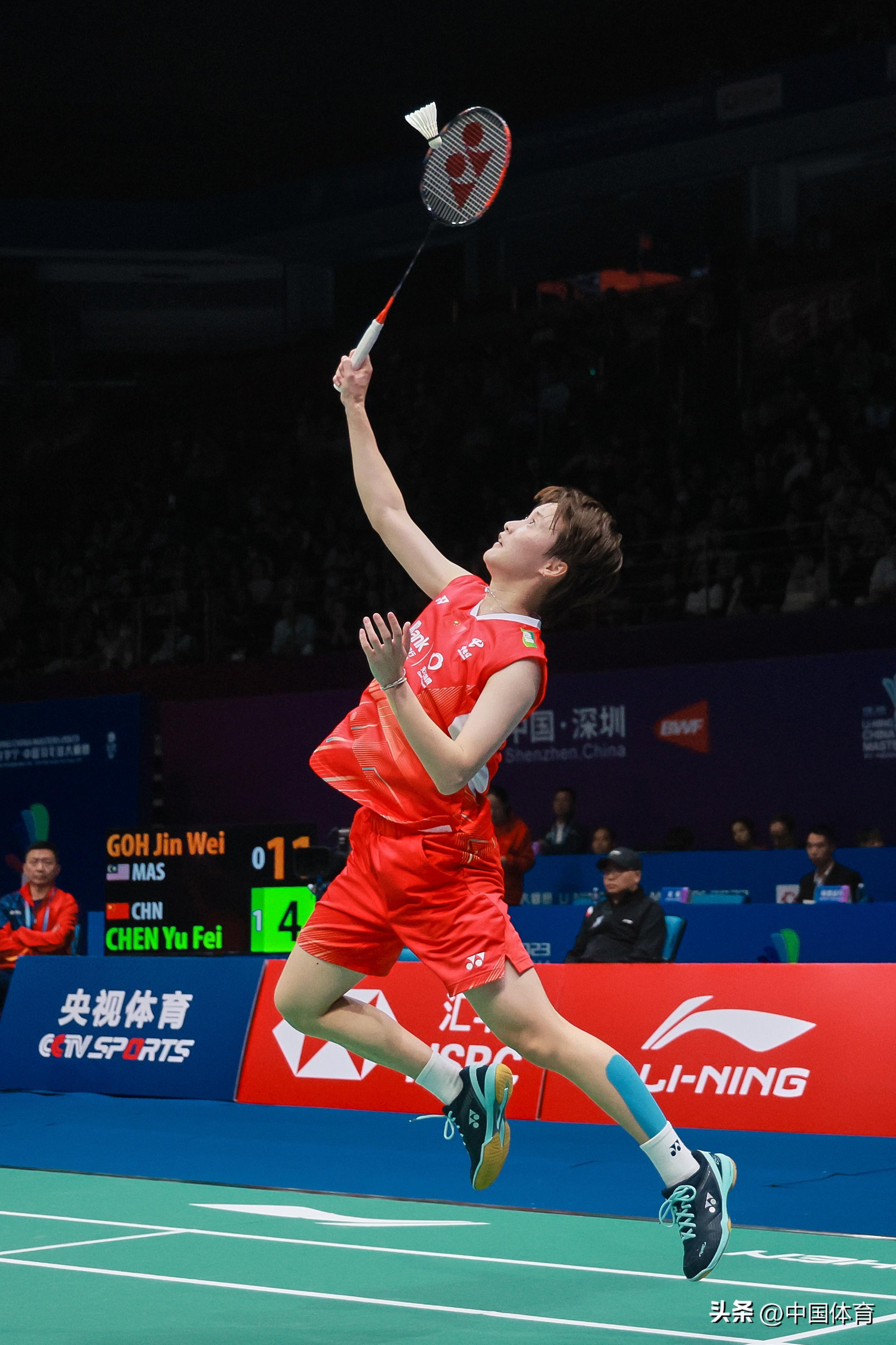 中國體育訊 11月23日,2023中國羽毛球大師賽在深圳灣體育中心春繭體育館進入第三比賽日。在女單第二輪比賽中,中國選手陳雨菲以2比0(21比9、21比16)擊敗馬來西亞選手吳堇溦,晉級八強。圖爲陳雨菲在比賽中。(中國體育圖片 鹿麟 攝)