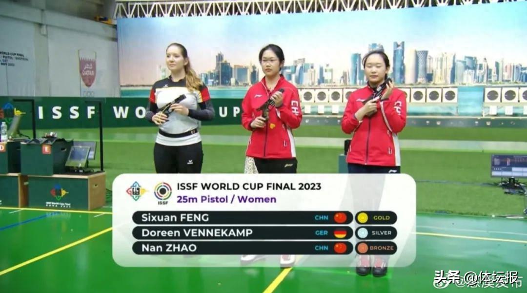 北京時間11月24日晚間結束的2023國際射聯射擊世界盃總決賽上,浙江姑娘馮思璇奪得女子25米手槍金牌。女子25米手槍資格賽中,馮思璇以第一名的成績,與排在第六位的趙楠一同晉級決賽。決賽中馮思璇穩紮穩打,以37中的成績奪得金牌。趙楠收穫一枚銅牌,德國選手文內坎普拿到銀牌。男子50米步槍三姿比賽,中國選手劉宇坤拿到一枚銀牌。老將李越宏收穫男子25米手槍速射亞軍。來源:中國體育報 圖自慈溪發佈
