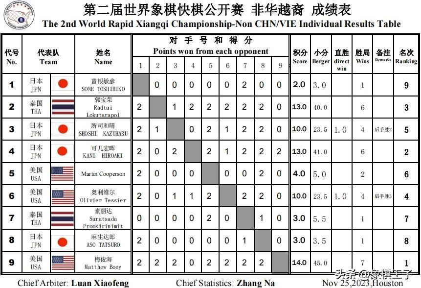 美國還有兩位非華越裔棋手,奧利維爾(Olivier Tessier)打進前四,Martin Cooperson第六。