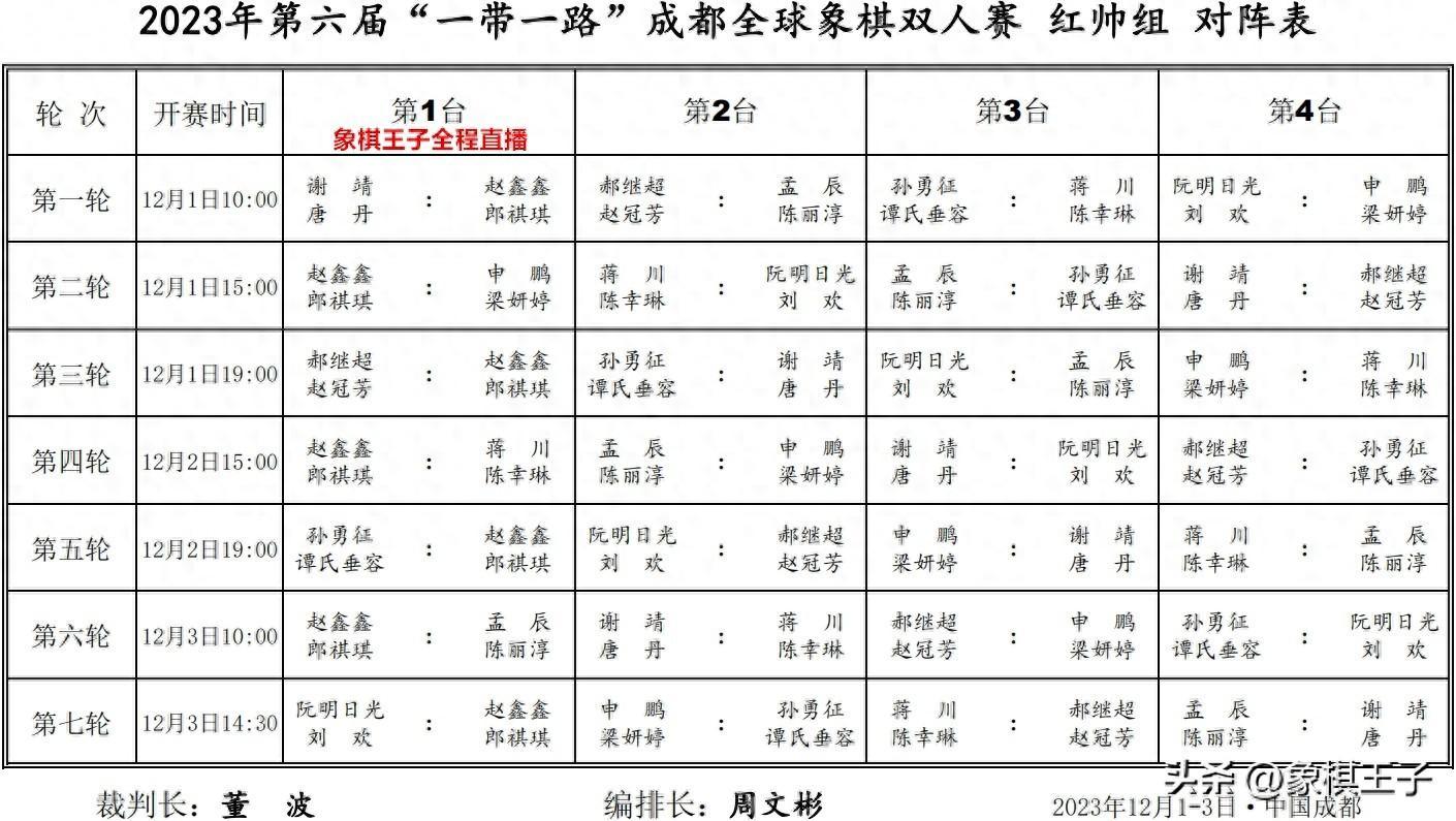 12月1至3日的2023第六屆“一帶一路”成都全球象棋雙人賽,率先開啓年底十二月的首戰。
