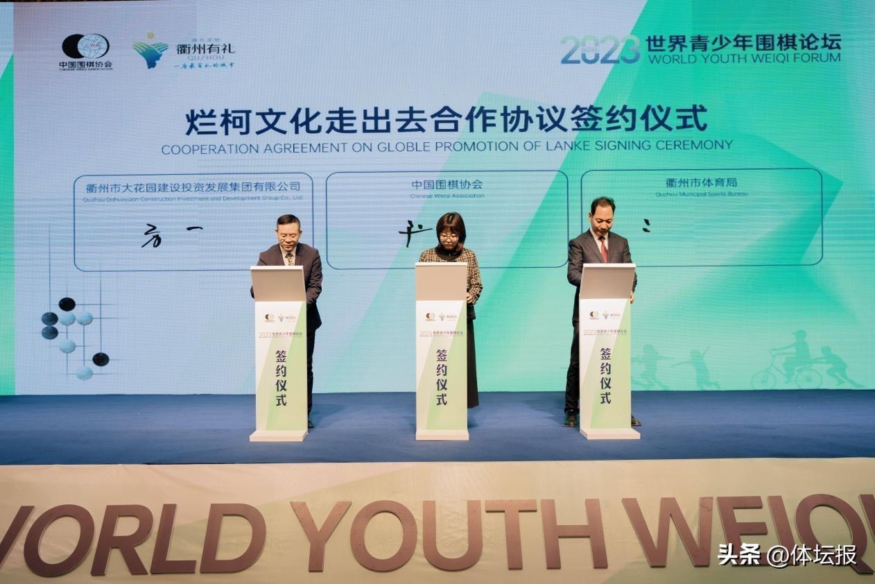 主論壇由各領域參會代表重點圍繞“圍棋與世界連接”、“青少年圍棋運動普及”、“圍棋與少年兒童發展”等內容,分別進行發言,共同探討世界青少年圍棋發展的更多可能性。衢州市爲進一步推動圍棋文化的創新和發展,加強國際圍棋組織的交流與合作。中國圍棋協會、衢州市體育局、衢州市大花園集團在開幕式上共同簽訂《爛柯文化走出去合作協議》。