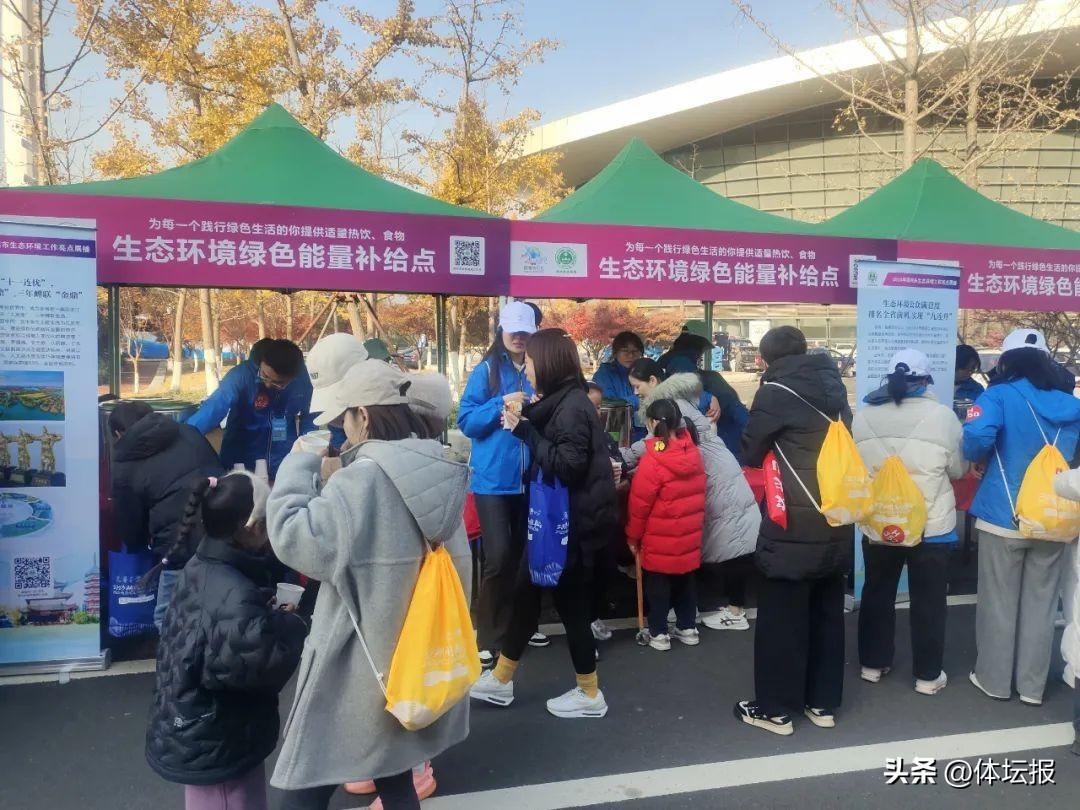 在現場的生態環境綠色補給點也人頭攢動,跑者們在獲得補給的同時紛紛參與活動,身體力行踐行低碳。