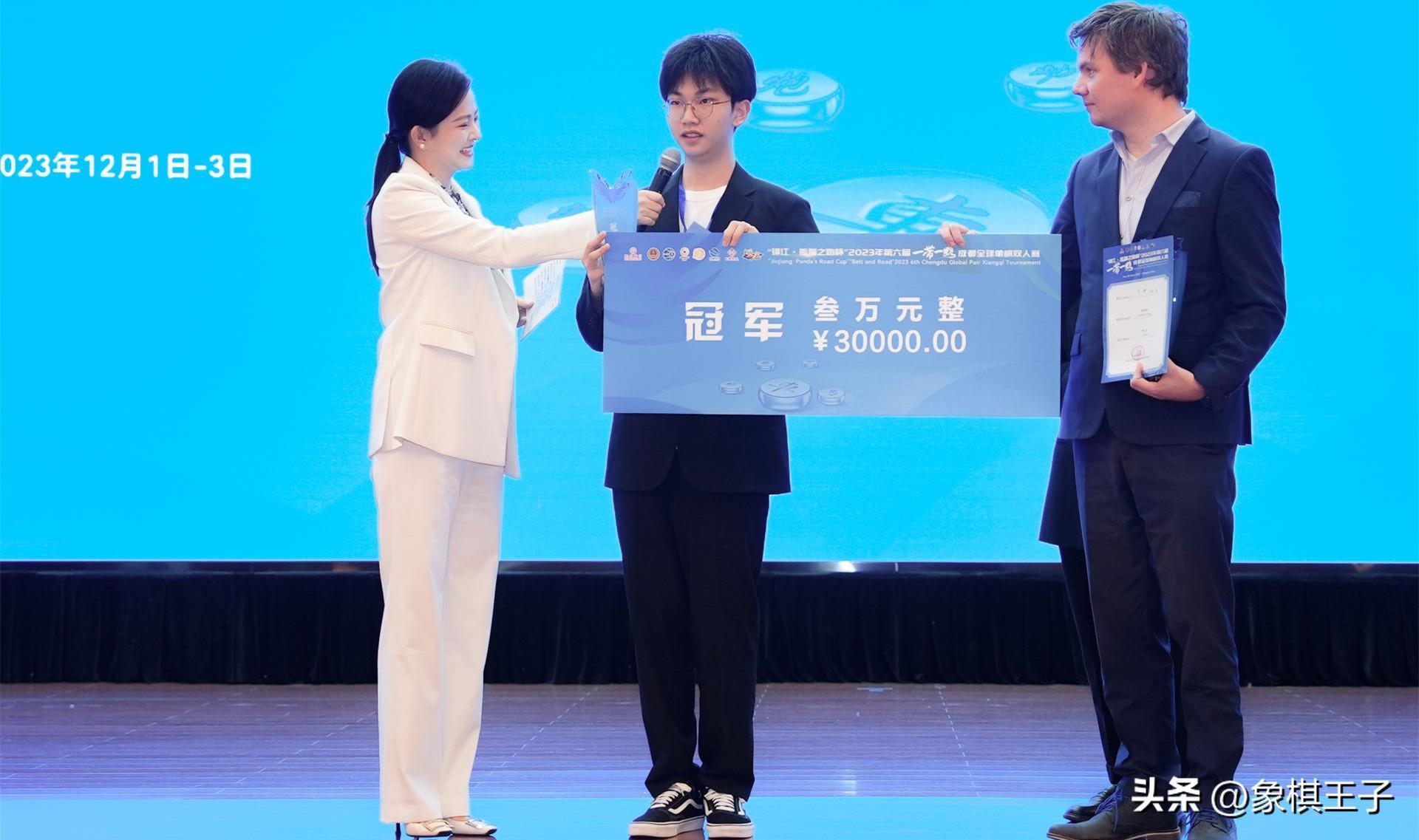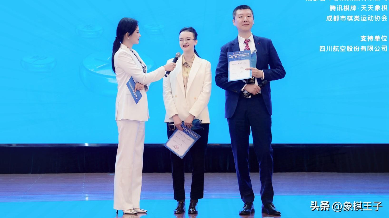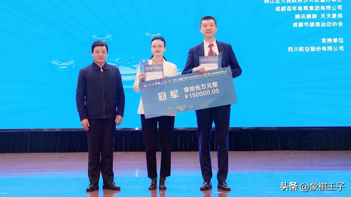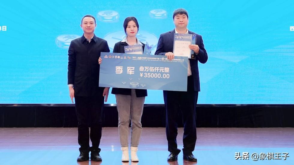 謝靖收穫2023第三冠,笑逐顏開,感言搭檔厲害,運氣好,唐丹說跟謝靖配合默契,多次得到謝特的指點,自己兩年沒下棋了,復出能拿冠軍很開心。