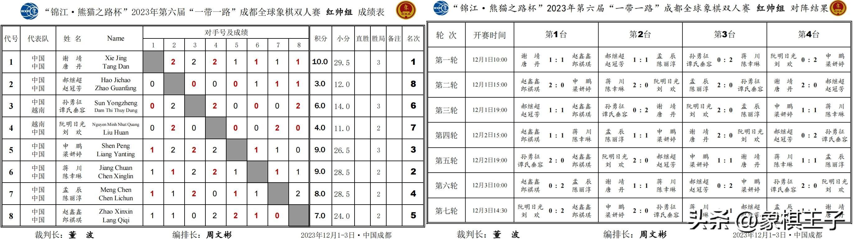 本屆大賽,2023年第六屆“一帶一路”成都全球象棋雙人賽,由世界象棋聯合會、成都市人民政府主辦。