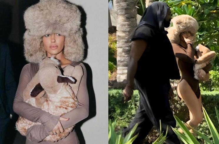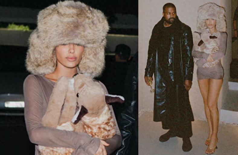 但這次與丈夫坎耶-韋斯特團聚,夫妻倆似乎並沒有受到離婚傳聞的影響,侃爺還是一如既往穿衣風格,而妻子比安卡則收斂了一下,雖然帽子還是挺誇張的,但衣服至少能“遮體”了,而且她一直緊緊抱着品牌Praying的小鹿包,擋在胸前,也間接遮住了好身材。