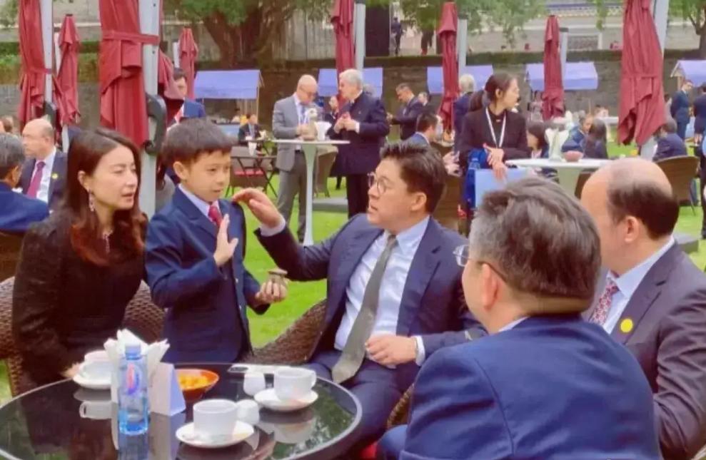 值得一提的是,在霍家大合影的對一排,站的是幾個小朋友,其中郭晶晶的兒子霍中曦,作爲霍家第四代長孫,站在第一排最中間的位置。