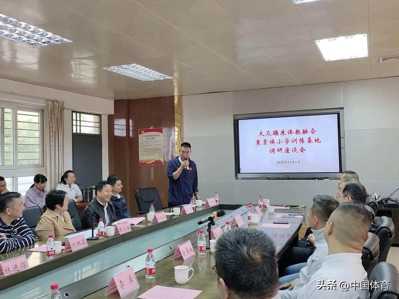國家體育總局體操運動管理中心蹦牀部部長賈伍華對各方領導的支持表示感謝,並表達了對民族英雄袁崇煥的敬意。他認爲,袁崇煥小學能將中華民族英雄精神與體育精神融合,更有利於大衆蹦牀的體教融合教育。此次基地調研座談會歸根結底討論的是人才培養的問題,他希望各部門能協助學校圍繞“小蹦牀、大健康”這一理念培養優秀人才。