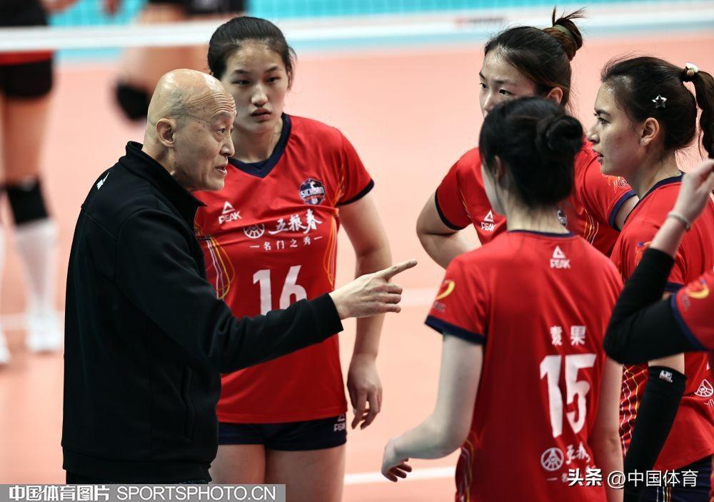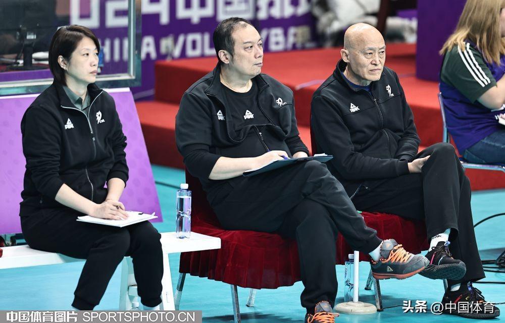 四川五糧春隊主教練胡進(右)關注場內隊員表現