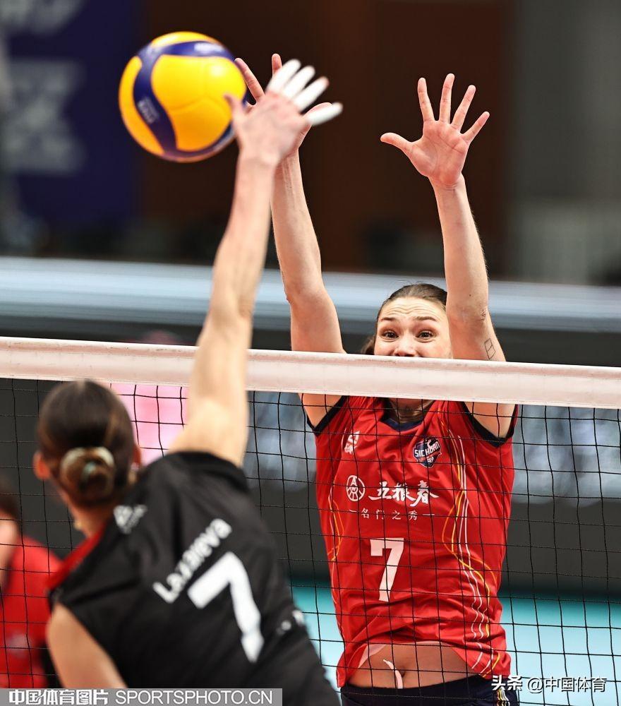 北京北汽隊安娜和姜汝鈺(右)攔網