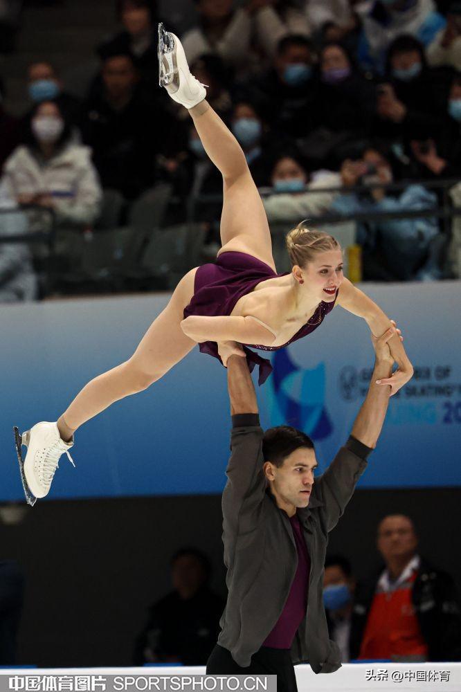 中國體育訊 12月7日,2023-2024賽季國際滑聯花樣滑冰大獎賽總決賽在北京國家體育館拉開帷幕。在成年組雙人滑短節目比賽中,德國組合黑澤/沃洛金(Minerva Fabienne HASE / Nikita VOLODIN)以72.56分搶佔先機,加拿大組合斯特拉託·杜迪克/德尚(Deanna STELLATO-DUDEK / Maxime DESCHAMPS)以 71.22分暫列第二,意大利組合孔蒂/馬西(Sara CONTI / Niccolo MACII)以 70.30分暫列第三位。中國隊無人晉級總決賽。(中國體育圖片 安靈均 攝)