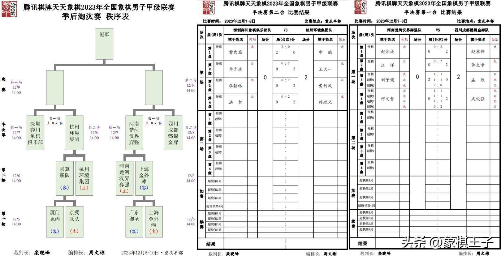 半決賽上,常規賽第一的三冠王四川成都懿錦金弈隊,挑選了過去兩年的亞軍河南楚河漢界弈強隊作爲對手。