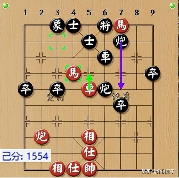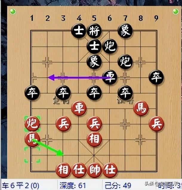 紅飛快出手,右炮轟黑7路馬,逼迫黑1路炮打過,復炮九進二,強奪黑1路邊馬。