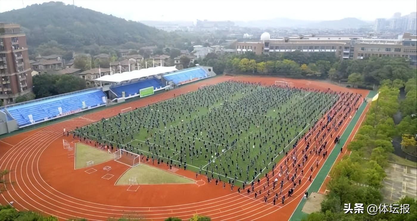 將目光聚焦長興,聽到發令開跑,龍山中學裏百餘人如離弦之箭衝出起點,同時,3000多名龍山學子伴隨着跑操音樂,展示了一場精彩的“籃球操大課間”表演。